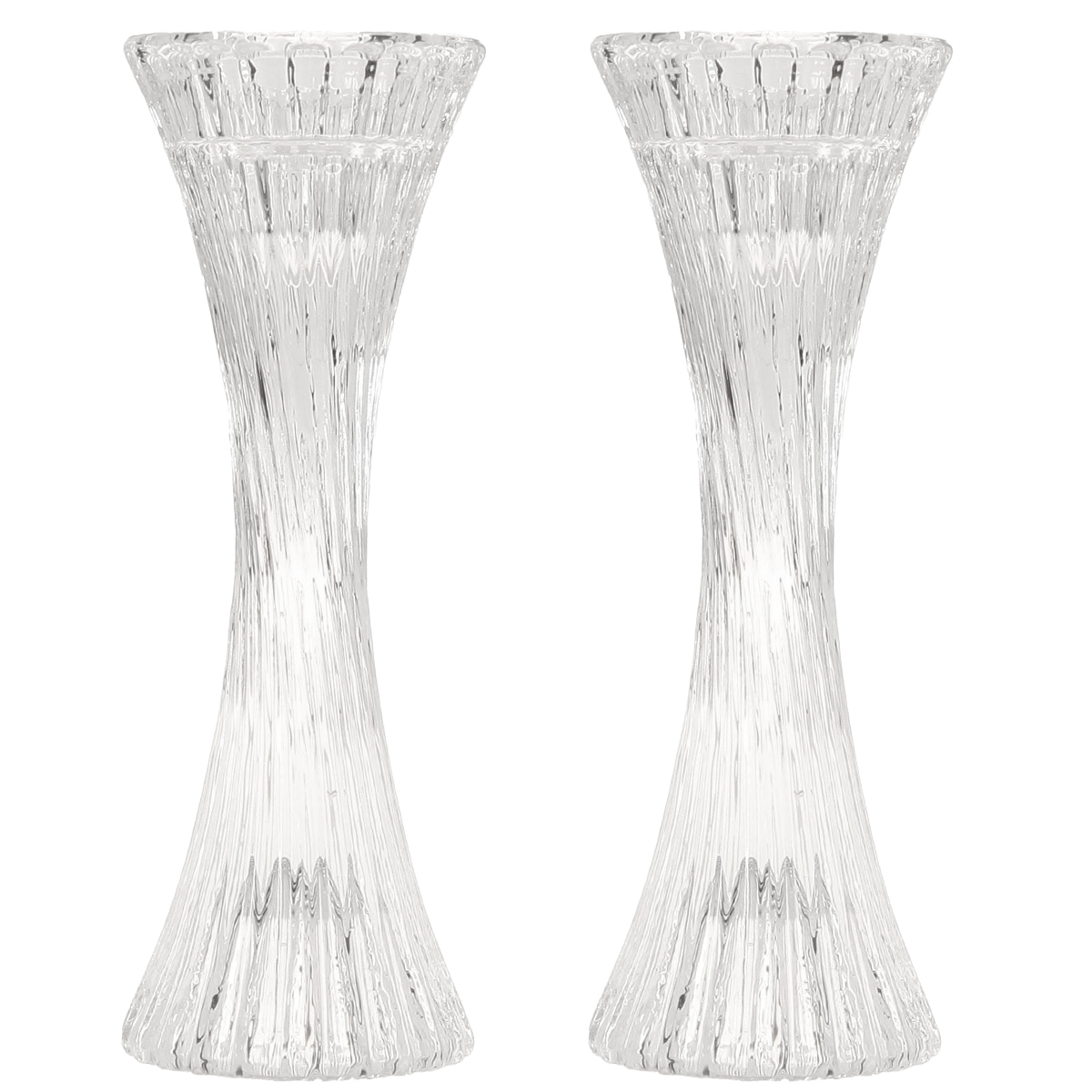 Kerzenhalter Glas Klar Stabkerzenhalter Rillen H20cm 2St