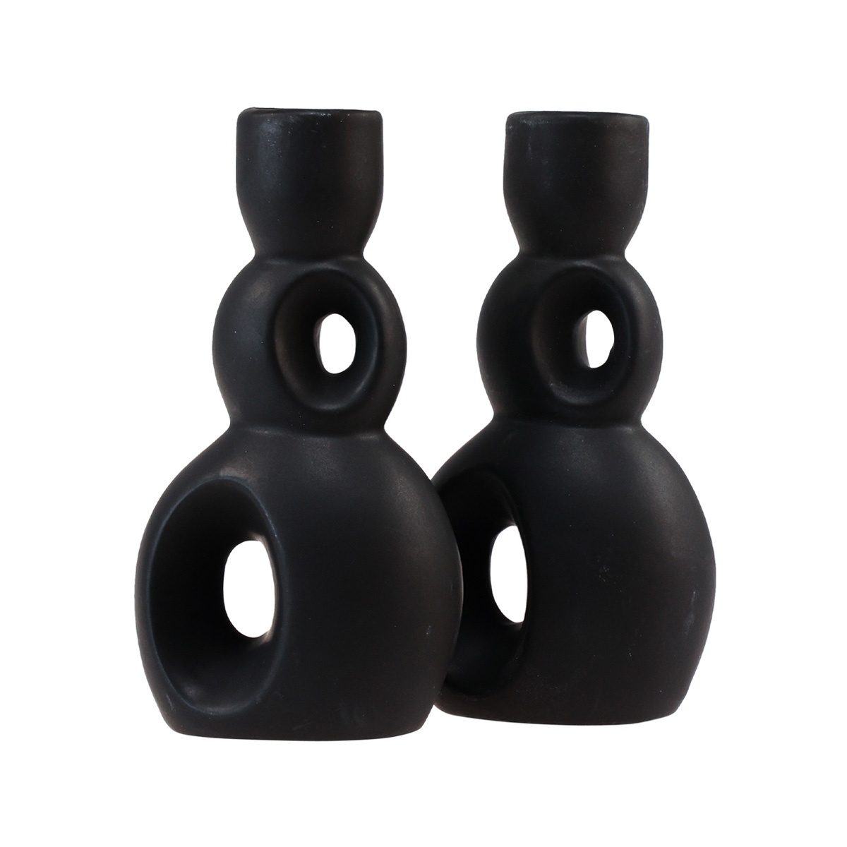 Bougeoir Bougeoir Céramique Noir H13cm 2 Pcs