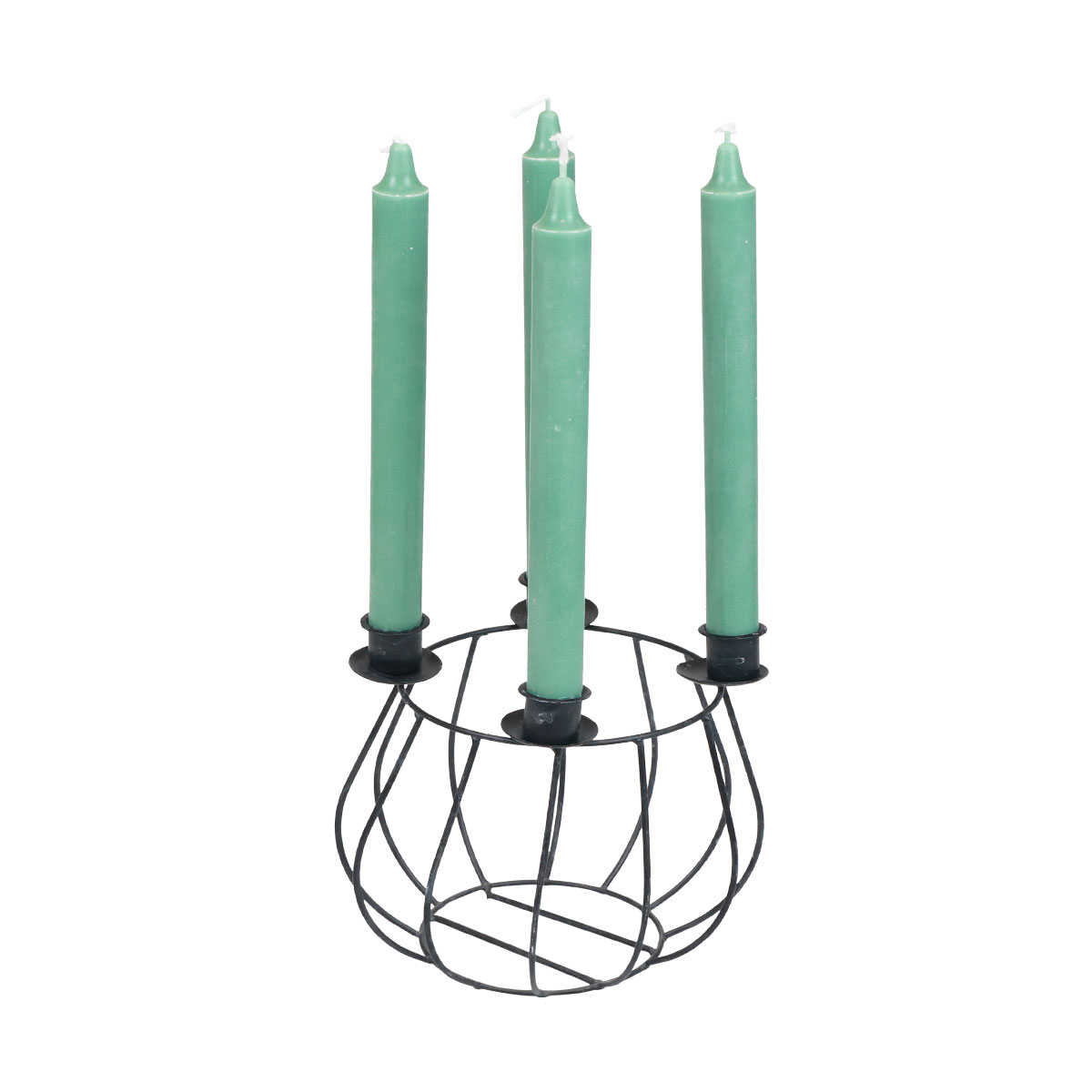 Quattro portacandele coronano il portacandele in metallo. Progettato come un cestino a traliccio, il portacandele in grigio costituisce anche una meravigliosa corona dell'Avvento.I montanti che formano il portacandele sono leggermente curvati. Si collegano ad un anello dall'alto e dal basso. La base è inoltre stabilizzata da brevi montanti, mentre i supporti per le candele coniche si trovano sull'apertura alla stessa distanza. Sono dotati di un vassoio di raccolta rotondo in modo che la cera che cola possa raccogliersi al loro interno.