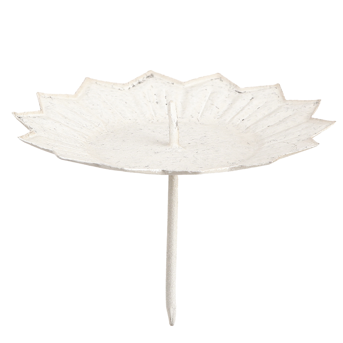Surtout dans une couronne de Noël ou de l'Avent, il ne faut pas manquer un bougeoir pour brancher des bougies à pilier! Ce porte-lumière en crème ressemble dans sa forme à une belle couronne de fleurs qui se cambre légèrement vers le haut. La beauté de ceci est que cette conception intelligente résulte également en un pare-gouttes qui protège votre couronne de la cire d'empotage.Avec le plug thorn, vous pouvez mettre ce bougeoir en métal à merveille dans des branches de mousse florale, de polystyrène ou de pin. Avec la bonne bougie, vous créez un grand jeu de lumière qui illumine l'atmosphère de votre salon.