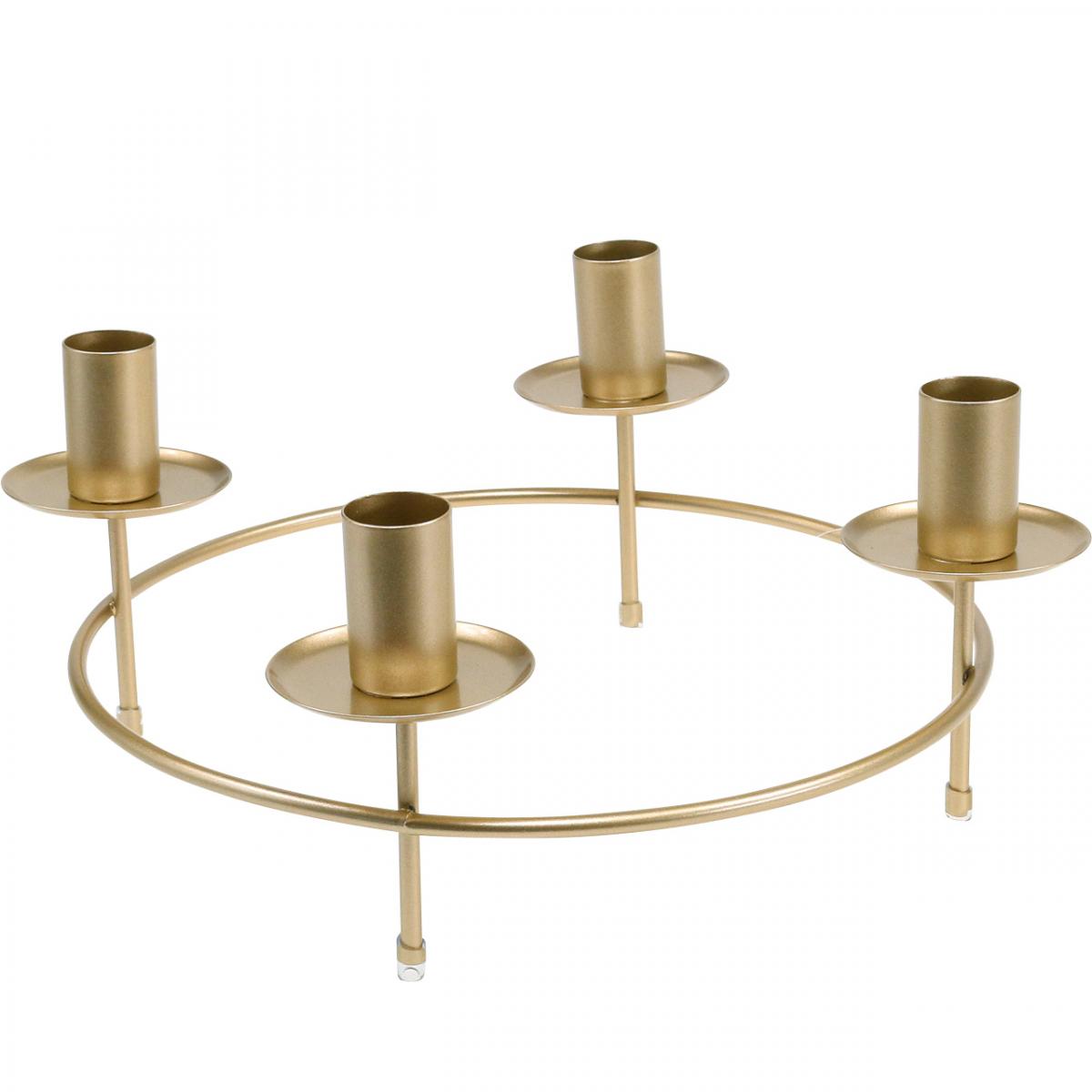 Produktname: Kerzenring Stabkerzen Kerzenhalter Gold Ø28cm H11cm 2St