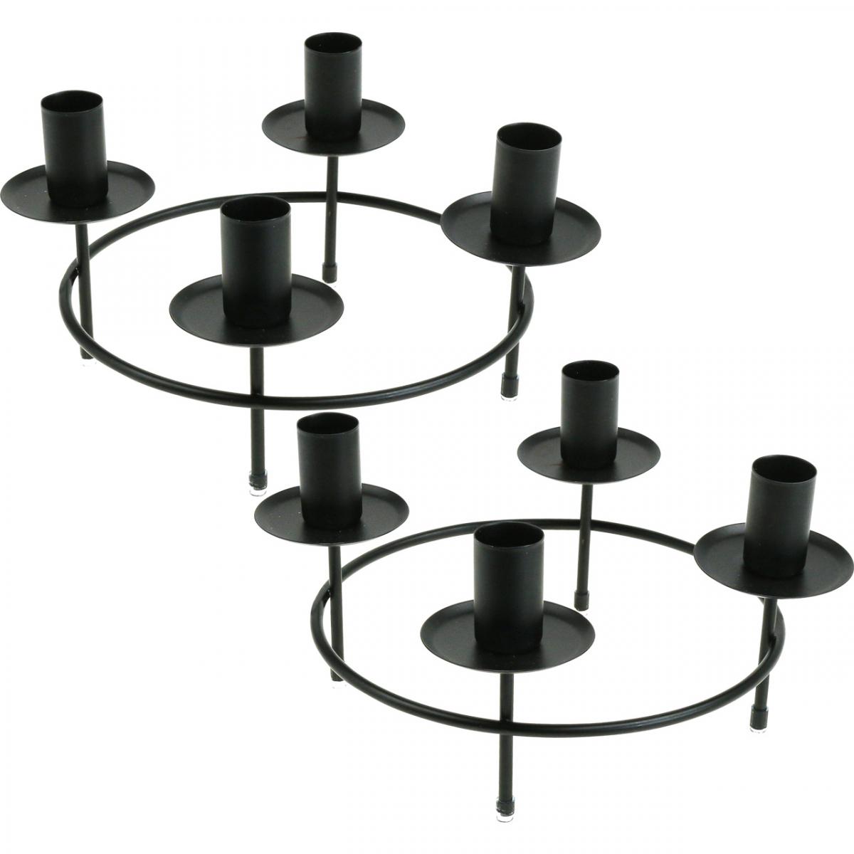 Kerzenring Stabkerzen Kerzenhalter Schwarz Ø23cm H11cm 2St