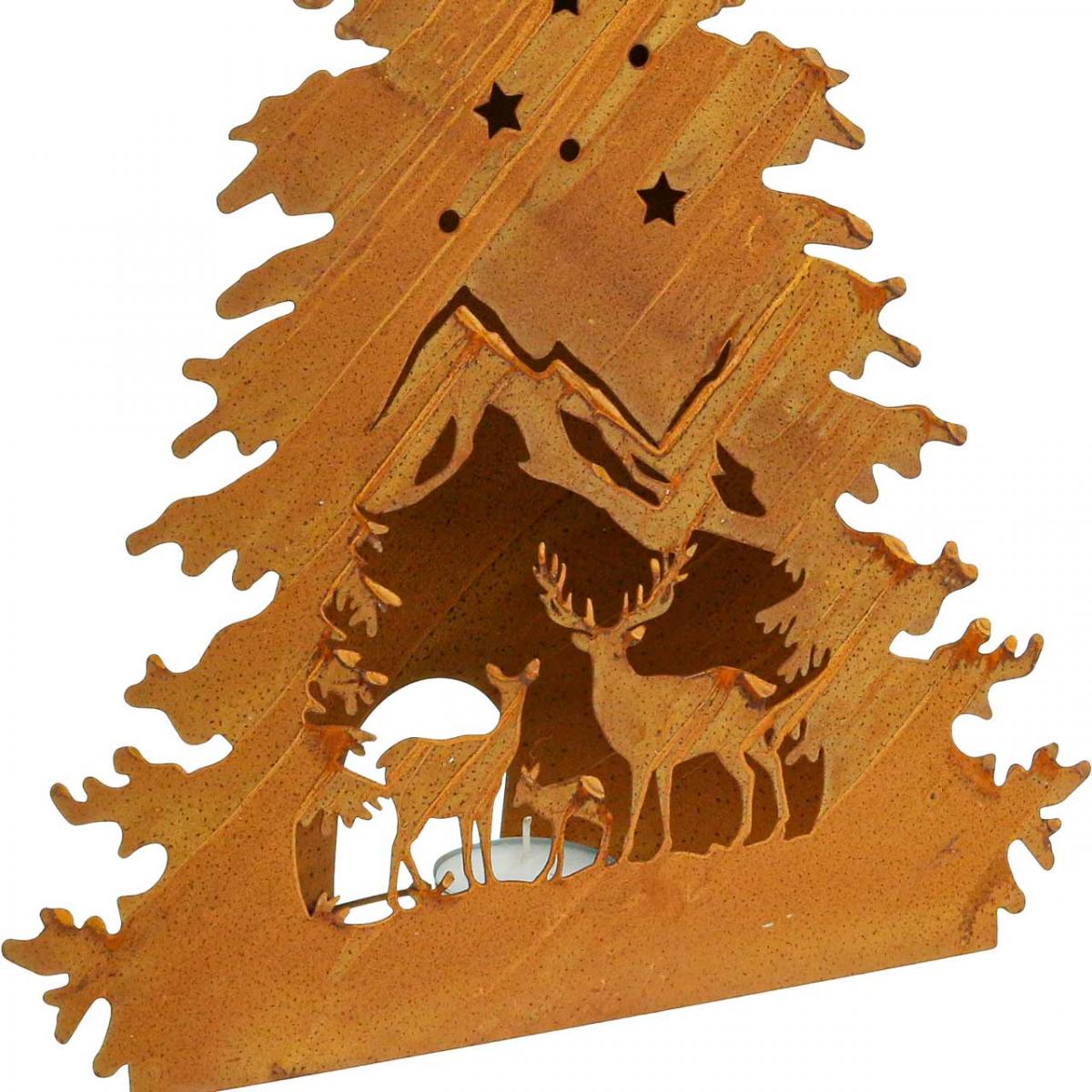 Teelichthalter Weihnachten Edelrost Hirsch Tanne H50cm