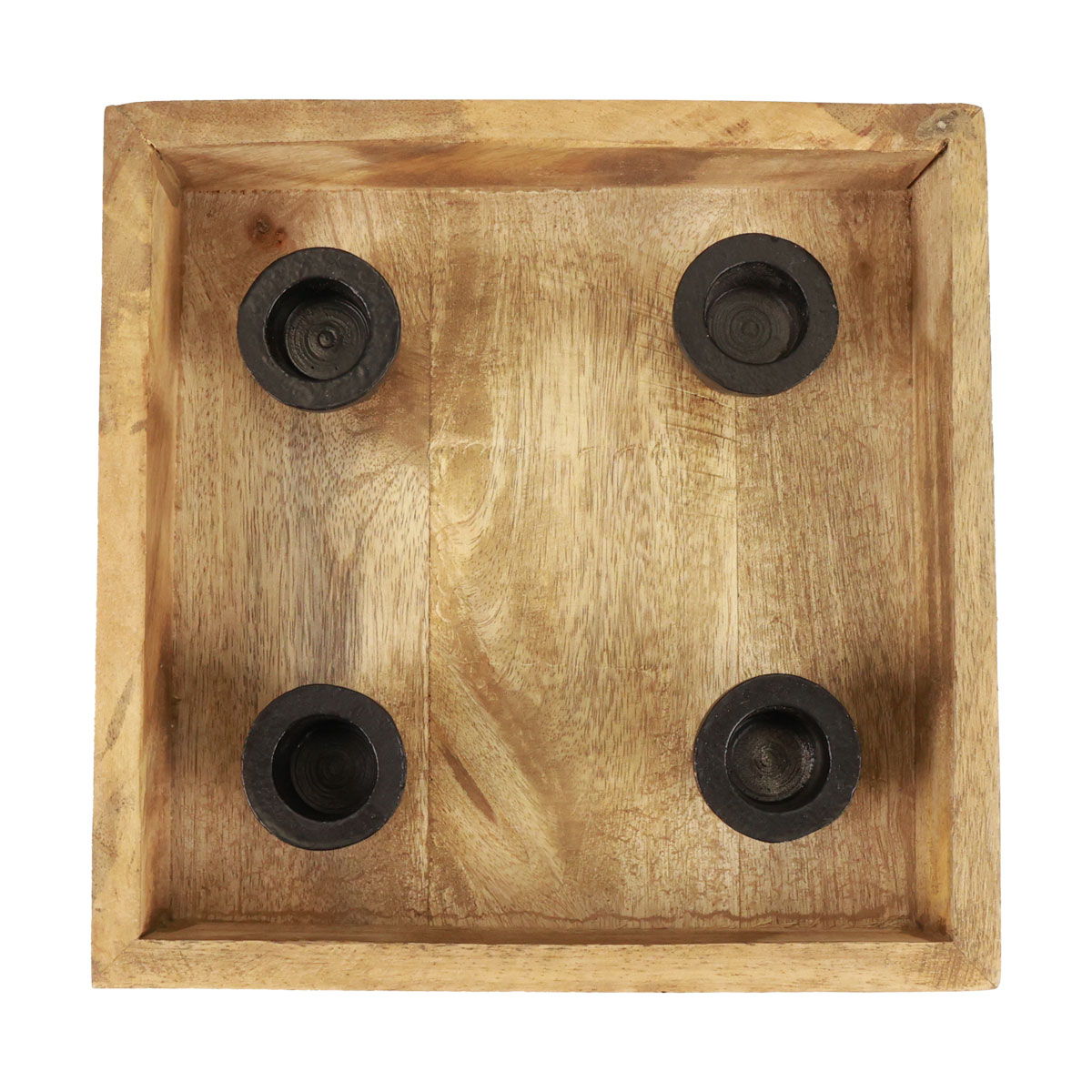 Das Kerzentablett besteht aus einem natürlich anmutenden Holztablett aus Mangoholz und vier Kerzenhaltern in Schwarz aus Metall. Die Stabkerzenhalter sind als Karo angeordnet. Das Gesamtbild aus Holz und Metall ergibt eine rustikale Deko nicht nur für Weihnachten!Warum für Weihnachten? Natürlich sind es genau vier Kerzenhalter, die das Holztablett trägt. Diese sind fest im Tablett verankert und geklebt.