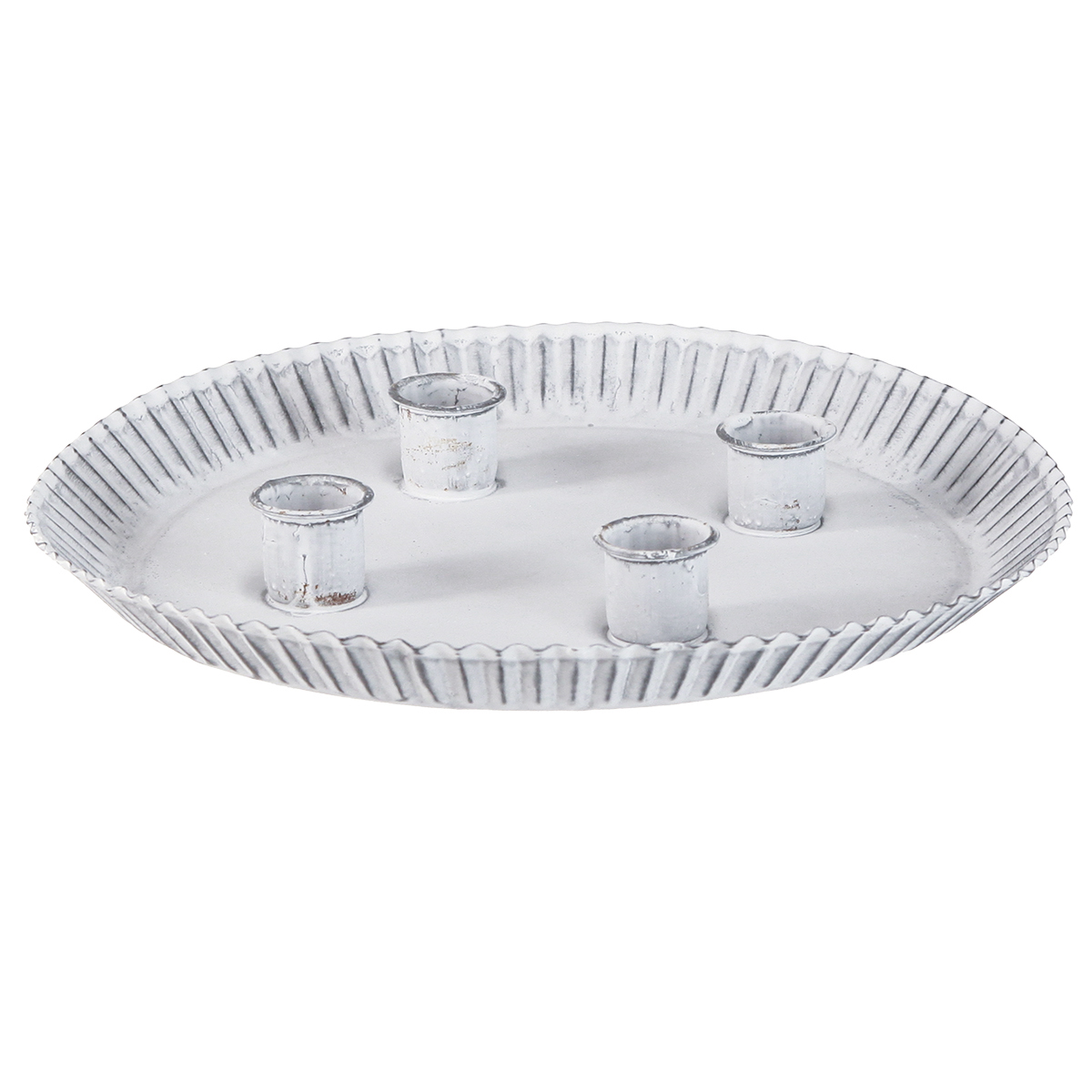 Kerzenteller Kuchenform mit 4 Kerzenhaltern Weiß Ø25cm