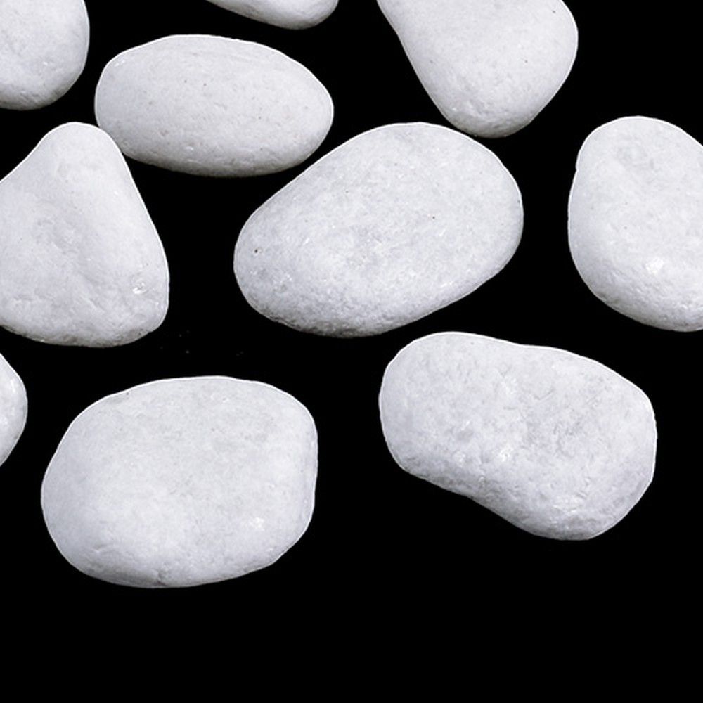 I ciottoli bianchi sono offerti in una rete che ha un peso totale di circa 1 chilogrammo. Sono ciascuno circa tra 2 e 4 centimetri di altezza.