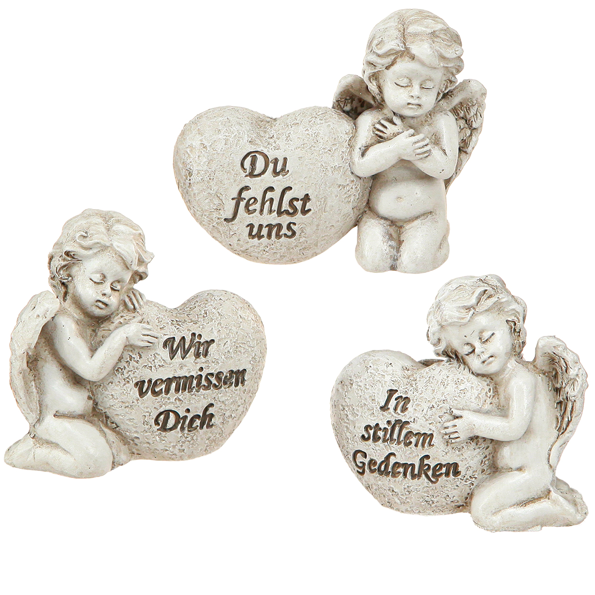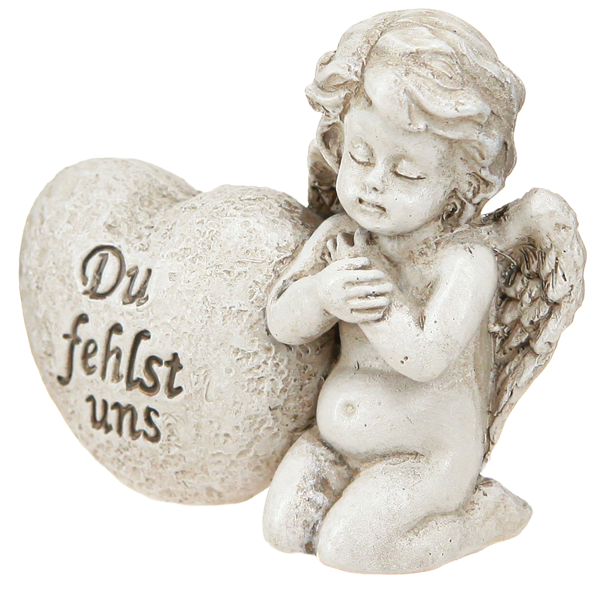 - Engel-Figur mit Herz und Spruch „Wir vermissen dich“