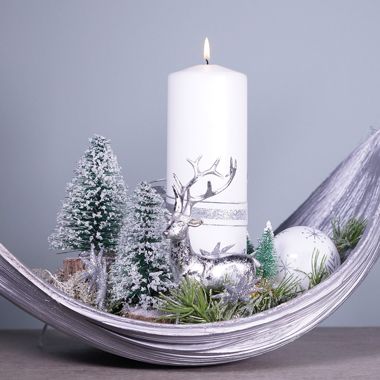 - Winterdekoration Baum mit Moos