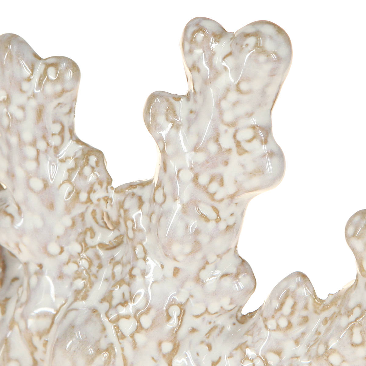Unsere Korallen-Deko besteht aus hochwertiger Keramik, die sorgsam glasiert wurde, um eine langanhaltende Ästhetik zu gewährleisten. Die Farbkombination aus Weiß und Beige unterstreicht den eleganten maritimen Look und lässt sich mühelos in verschiedene Raumdekorationen integrieren. Die Keramik ist bearbeitet mit einer aufwendigen Glasurtechnik, die nicht nur die optische Qualität erhöht, sondern auch die Langlebigkeit sichert. Durch die stabile Fertigung und die raffinierte Formgebung ist diese Koralle ein Dekorationsstück, das Sie durch viele Sommersaisons begleiten wird.