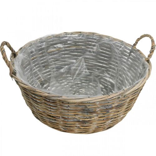 Grand panier en osier avec anses, blanc naturel, jardinière XL style champêtre, panier décoratif pour plantes et rangement, Ø51cm