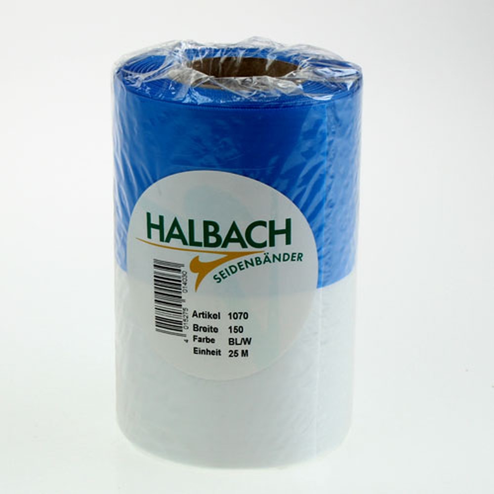 Produktname: Kranzbänder Moiré Blau-Weiß 150 mm