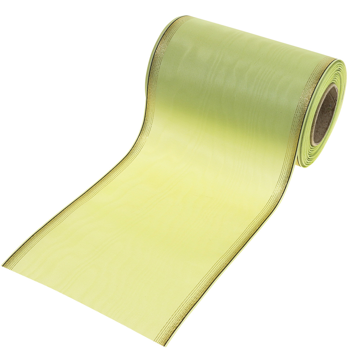 Ruban moiré pour couronne, 150 mm, 25 m, vert clair bordé d'or, pour l'art floral et la décoration.