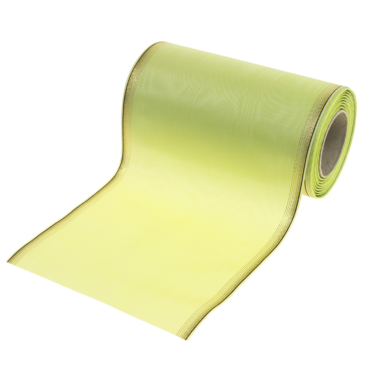 Nastro per ghirlanda moiré, verde chiaro con bordo dorato, 175 mm x 25 m, decorazione di alta qualità per fioristi