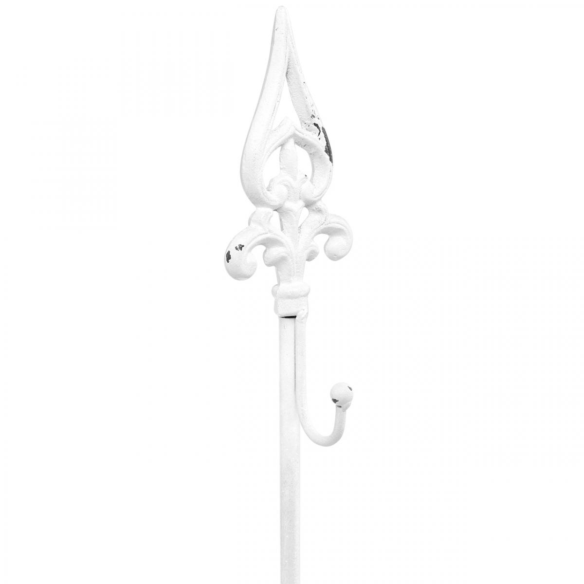 Il porta ghirlande in bianco porta lo shabby chic alle tue ghirlande decorative! La decorazione in metallo in ghisa ha una base pesante per non far ribaltare il supporto, un gancio laterale per appendere la ghirlanda e una punta a forma di giglio stilizzato. Il supporto in metallo è stato prima dipinto di marrone, poi di bianco. Infine, la vernice bianca sul supporto per ghirlande è stata rimossa in alcuni punti, il che conferisce al supporto decorativo il suo tipico aspetto vintage.Il supporto decorativo mette in scena magnificamente ghirlande naturali o artificiali. Il supporto per composizioni e ghirlande non solo sembra molto nostalgico nelle decorazioni da tavola in stile country, ma anche in un ambiente rustico o con vecchi mobili in legno. Puoi anche posizionare il porta ghirlande su un comò, un caminetto, sul davanzale della finestra o nella vetrina. Il supporto in metallo bianco è ideale anche per la decorazione di un matrimonio.
