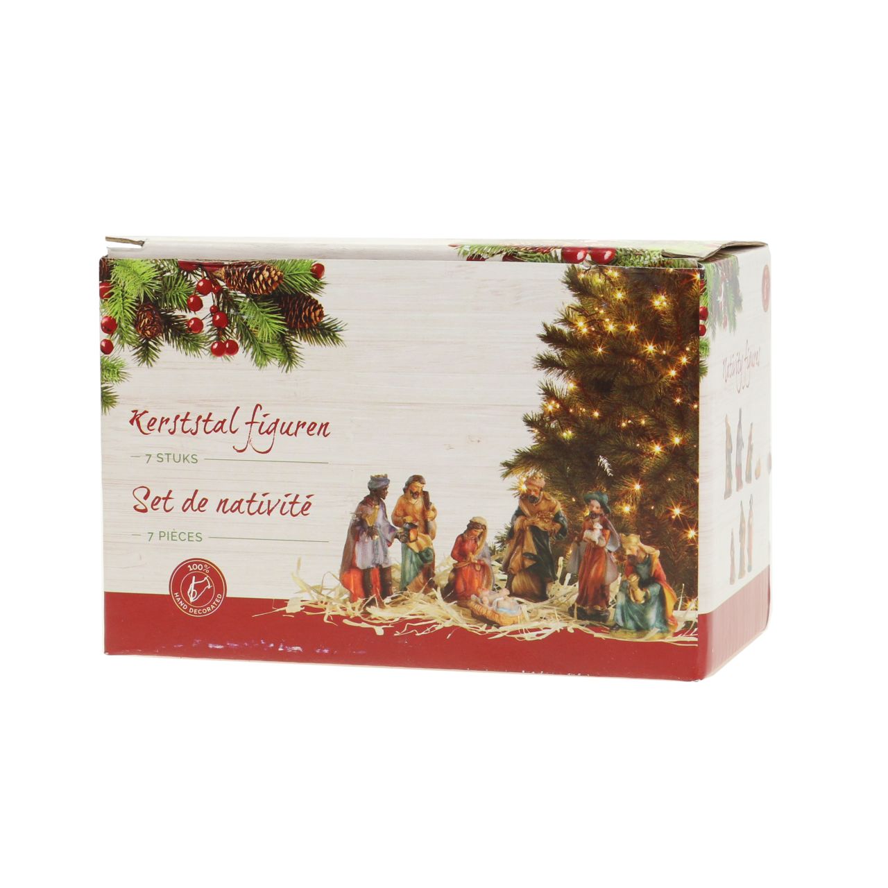 I presepi dipinti a mano sono realizzati in pietra artificiale o poliresina. Il set contiene le seguenti 7 figure del classico racconto di Natale: Gesù Bambino, Maria, Giuseppe, un pastore, Melchior, Balthasar e Caspar. La dimensione varia da circa 2 centimetri a circa 9 centimetri.