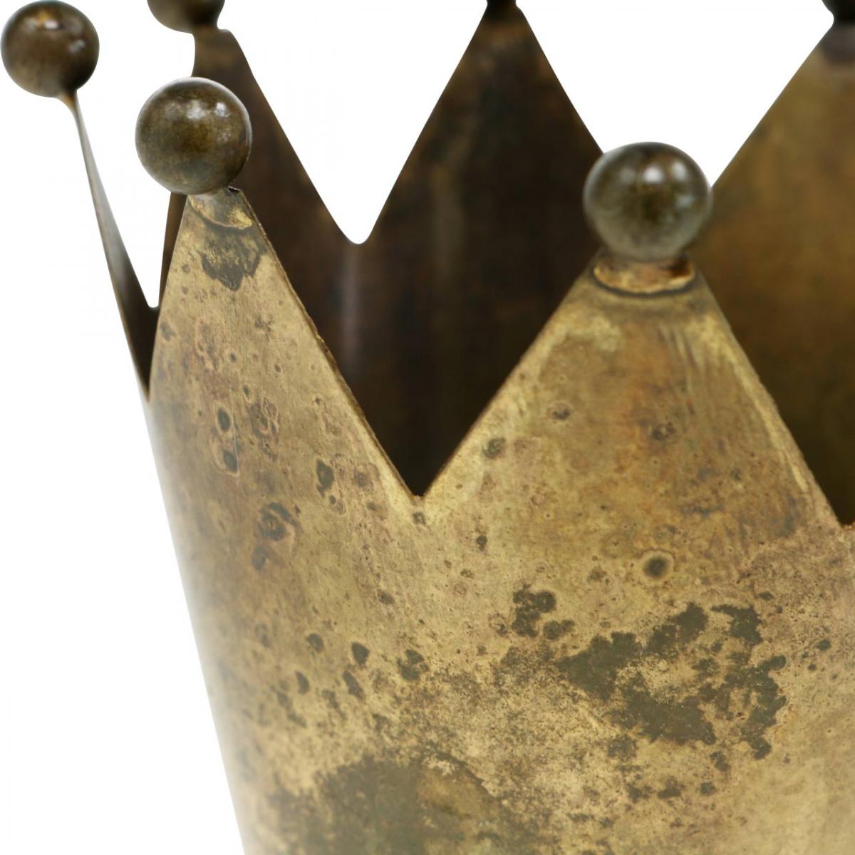 Portacandela a corona in metallo effetto ottone anticato Ø12,5 cm H11,5 cm