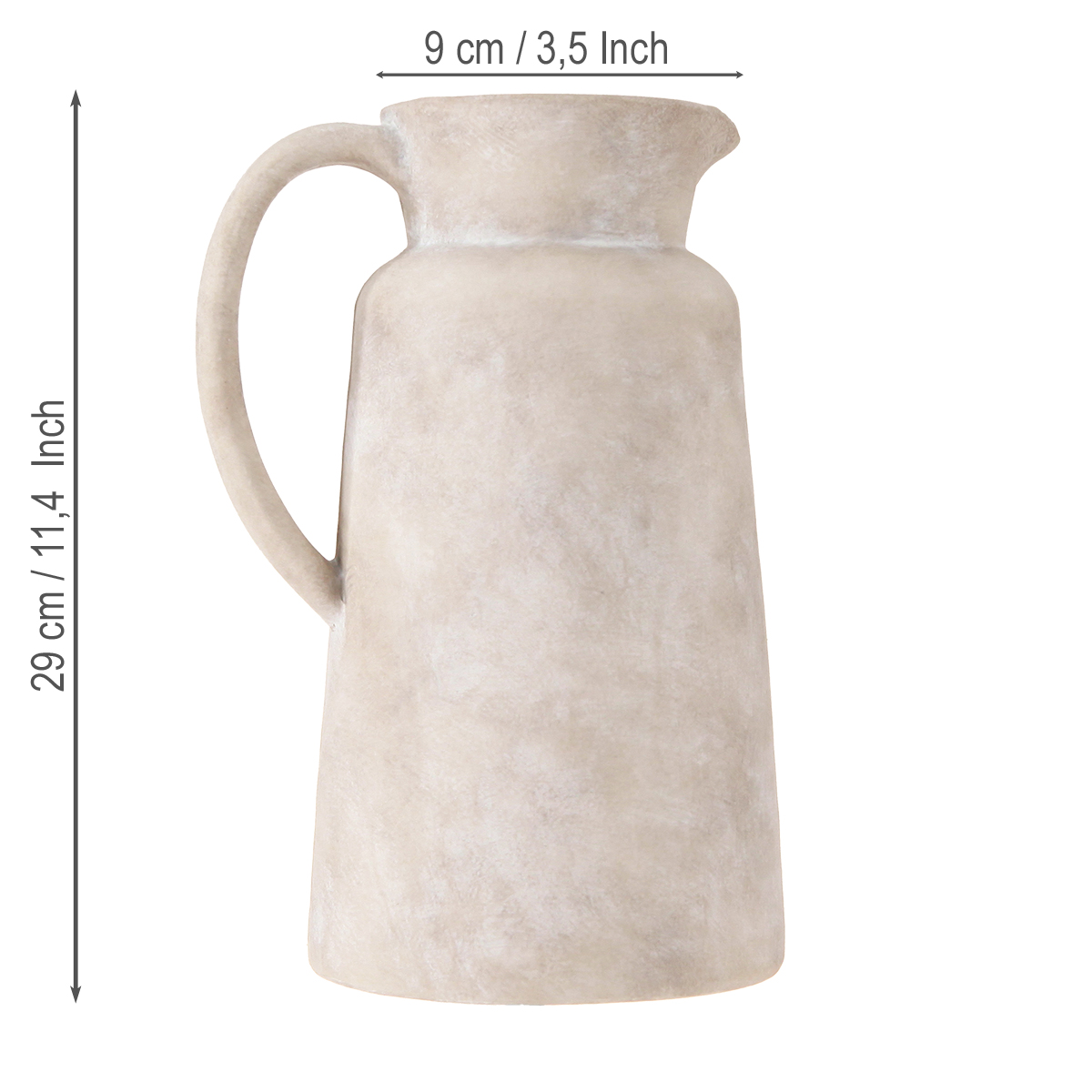 Der Deko-Krug aus Keramik in Beige bietet eine zeitlose Ergänzung für jede Inneneinrichtung, die Wert auf Authentizität und natürliche Materialien legt. Der stilvolle Henkelkrug zeichnet sich durch eine rustikale, beige Oberfläche aus und erinnert in seiner Form an das traditionsreiche Design von Milch- und Henkelkannen. Seine unauffällige, aber dennoch elegante Optik macht diesen Krug zu einem vielseitigen Deko-Accessoire, das sowohl in modernen als auch in klassischen Einrichtungsstilen einen Platz findet. Die Verwendung von hochwertiger Keramik unterstreicht die langlebige Qualität dieses Produktes und lädt dazu ein, kreative Dekorationsideen zu verwirklichen. Egal ob auf dem Balkon, im Wohnzimmer oder in der Küche, dieser Keramik-Deko-Krug bringt stets einen Hauch von natürlicher Eleganz in Ihre Räume. Ideal geeignet ist er für Trockenblumen oder als Dekoelement in Kombination mit anderen von Vintage inspirierten Deko-Artikeln von Floristik24.