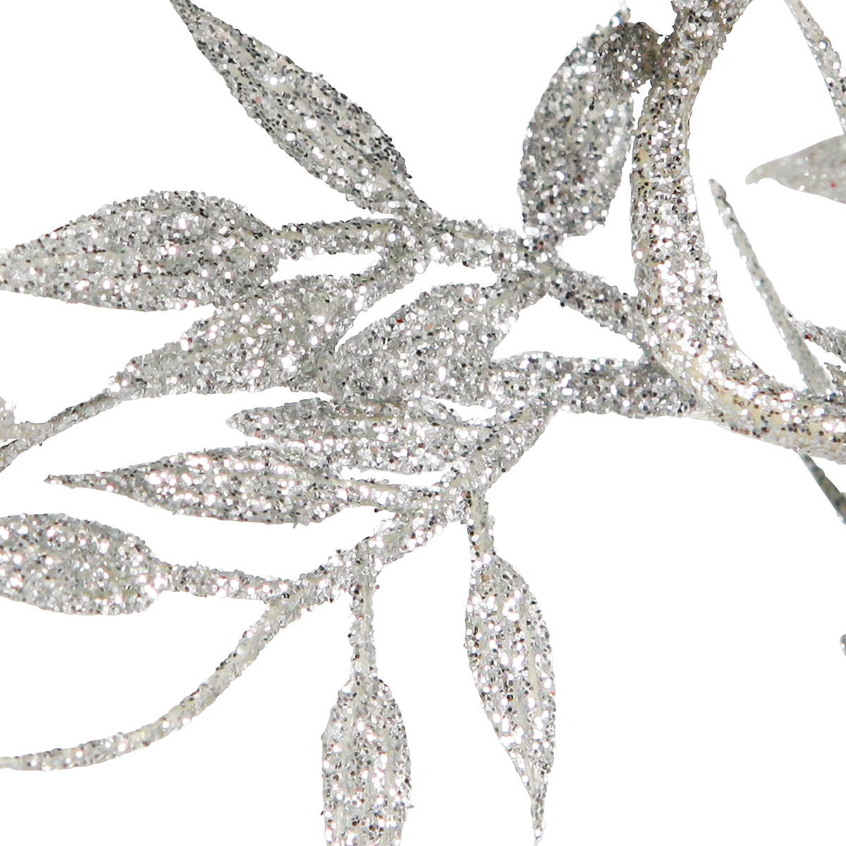 L'attenzione ai dettagli si riflette nelle foglie finemente lavorate, rifinite con glitter argento. Un eye-catcher che non può mancare in occasione di eventi e feste, come decorazione per vetrine o decorazioni per matrimoni. Posiziona la nostra scintillante decorazione sospesa sul telaio della porta, progetta con stile il telaio della tua finestra o aggiungi accenti eleganti alla tua parete.