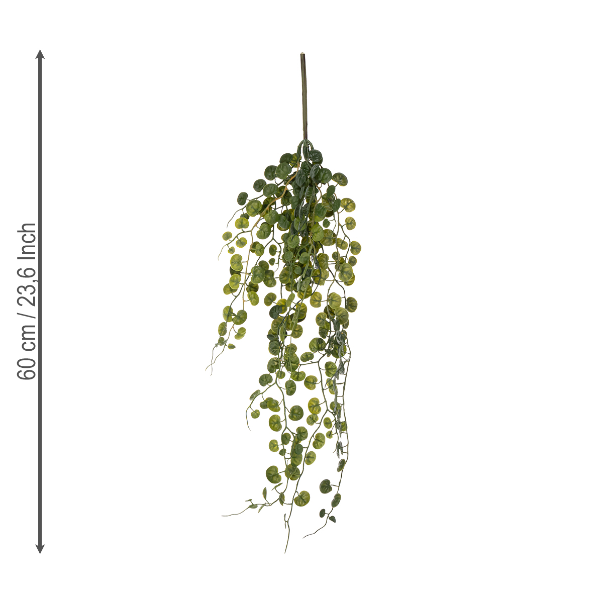 Questa pianta artificiale sospesa, curata nei minimi dettagli, colpisce per la sua lunghezza di 60 cm e il suo diametro di 20 cm. Le foglie sono realizzate in plastica di alta qualità, la cui consistenza e colore imitano in modo sorprendente le piante vere. Una caratteristica pratica: grazie allo stelo flessibile, la pianta può essere modellata e disposta a piacere. Desideri ancora più flessibilità? Il set da due ti permette di dare vita a idee ancora più creative, sia come decorazione da tavola combinata che come accattivante espositore da parete.