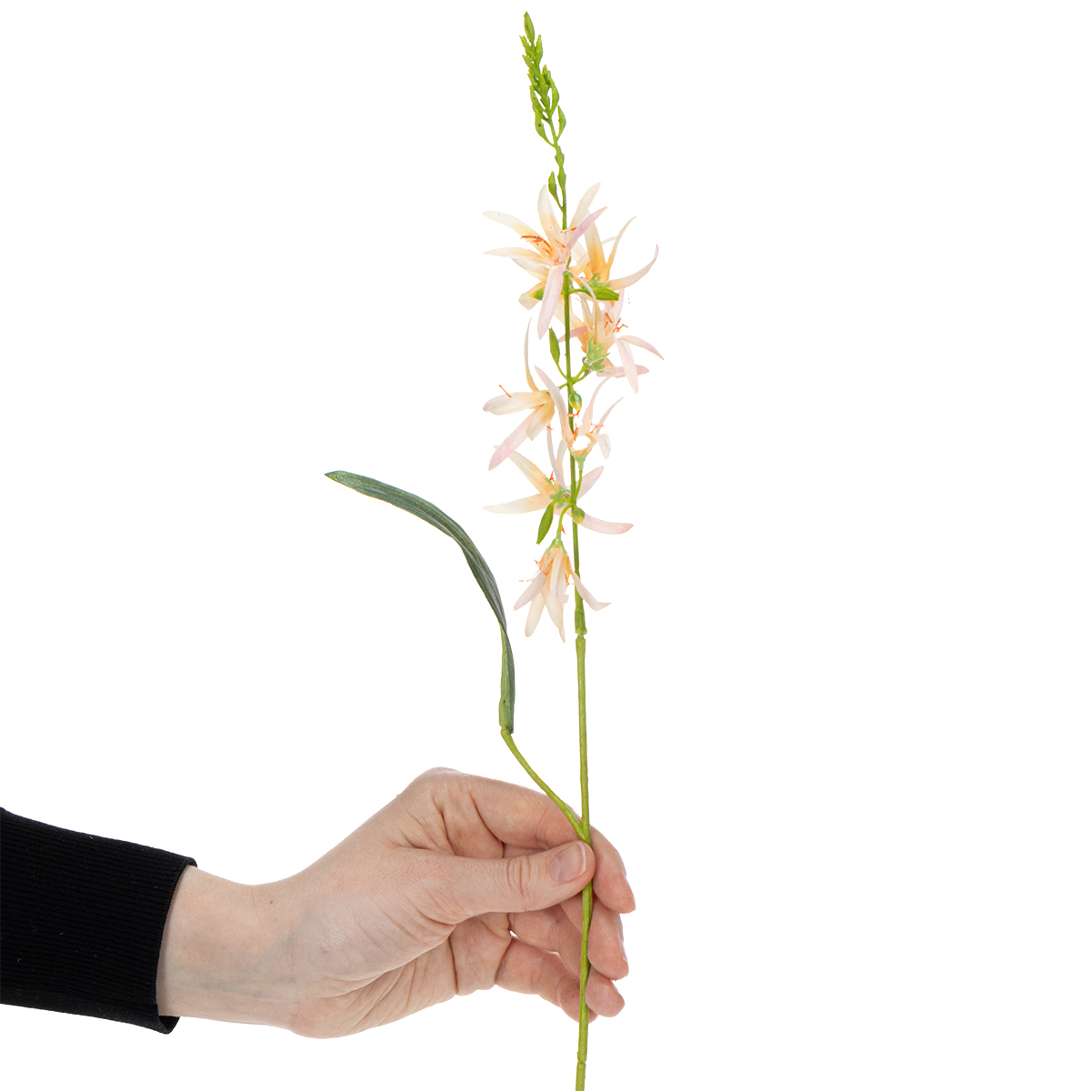 Questo giglio artificiale a gambo lungo colpisce per l'alta qualità dei suoi materiali, poliestere e plastica. Questa combinazione garantisce non solo un aspetto realistico, ma anche una lunga durata. I dettagli raffinati dei petali e la colorazione naturale conferiscono al giglio un aspetto affascinante, quasi ingannevolmente reale. Sprigiona tutta la sua magia, soprattutto ai matrimoni, dove si ricerca un design elegante e senza tempo. Che si tratti del centrotavola, di composizioni con vasi alti da terra o semplicemente di un vaso moderno sul tavolo del ricevimento, questo giglio è un vero colpo d'occhio.