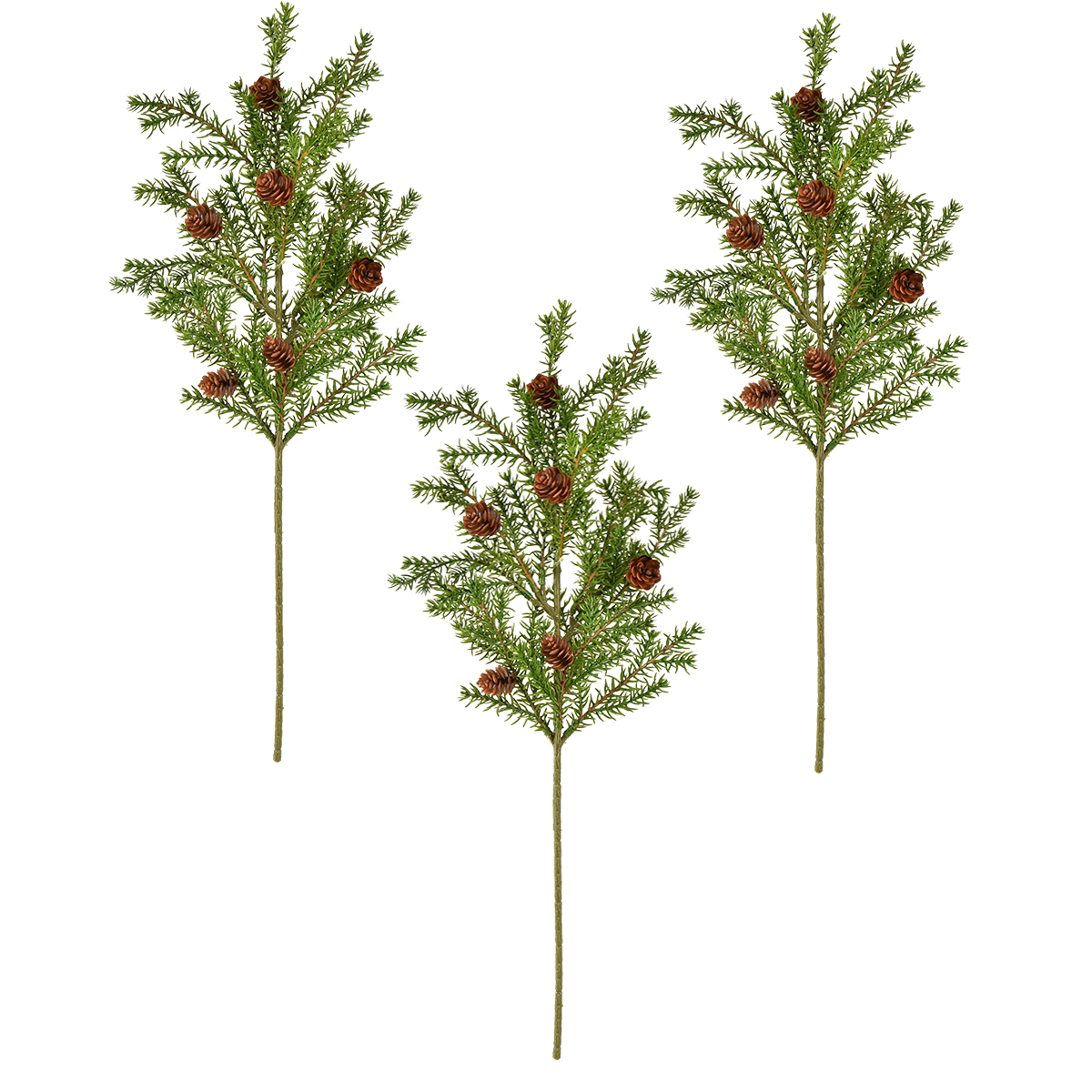 Branches de pin artificielles avec pommes de pin, 48 cm – Décoration de Noël, lot de 3 branches vertes