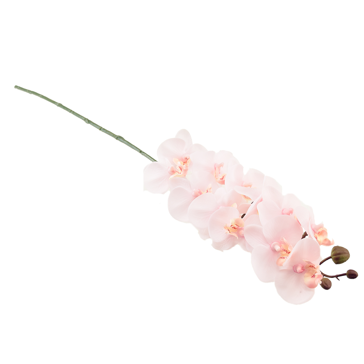 Cette orchidée artificielle d'un rose délicat n'est pas seulement incroyablement réelle. Le Phalaenopsis rose est également disponible en qualité Real Touch de haute qualité.Au total, douze fleurs d'orchidées de taille moyenne et trois bourgeons de tailles différentes sont attachés à la longue tige de fleur artificielle en plastique vert au-dessus.