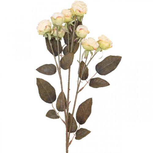 Roses artificielles fanées Drylook 9 pétales crème 69cm