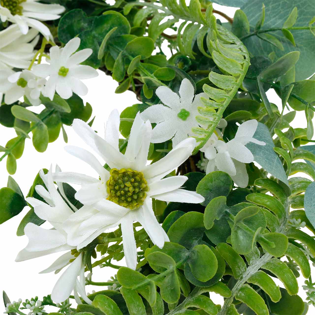 Künstlicher Eukalyptus-Kranz mit Farn, Kapmargeriten und Jasmin, Türkranz, Deko Kranz, Tischdeko
