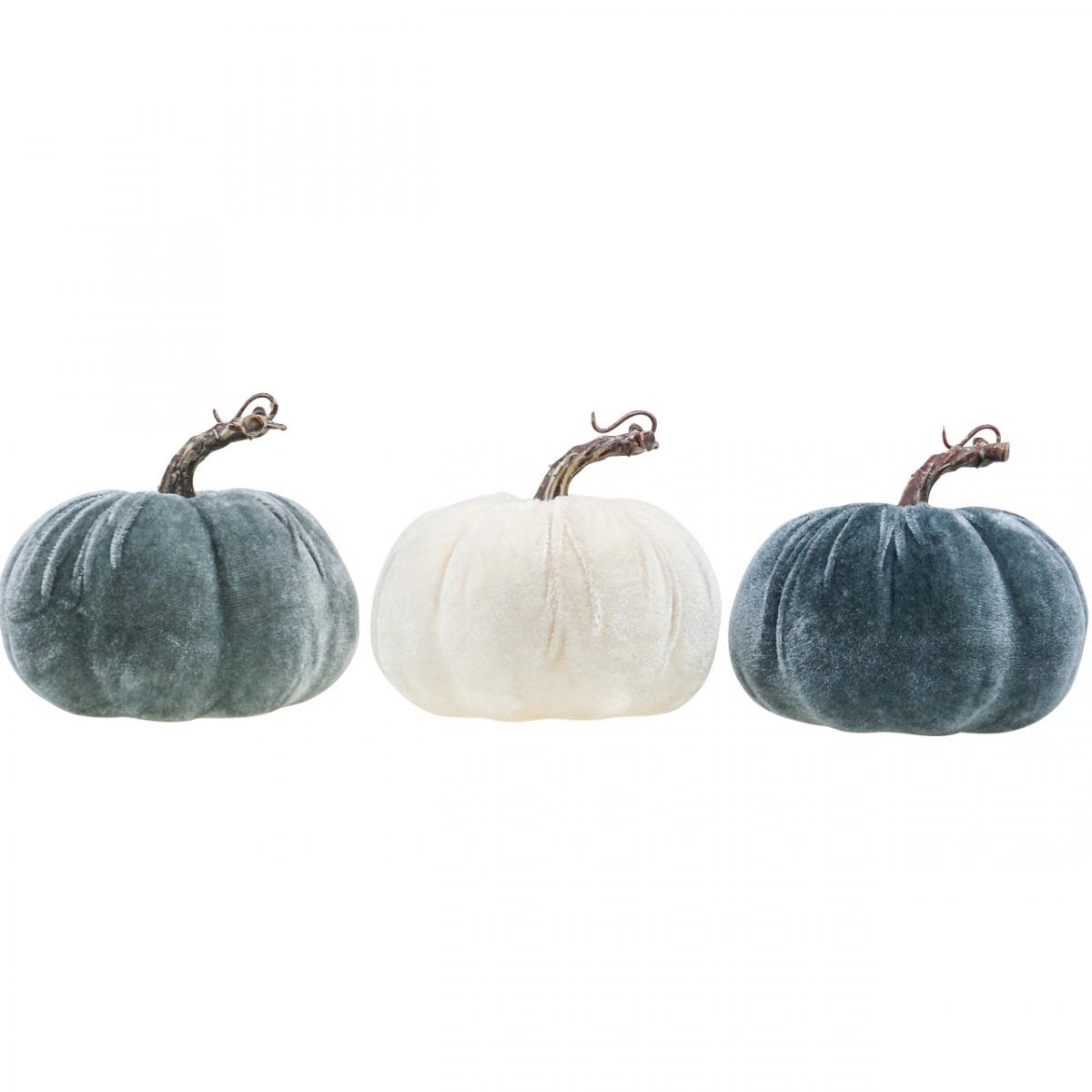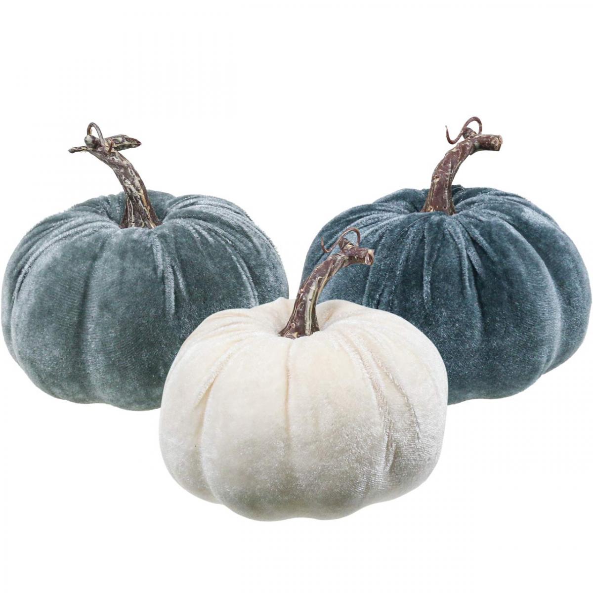 Ti piace meno colorato e più semplice? Allora questa decorazione di zucca fa per te! Tre zucche decorative in grigio, grigio chiaro e beige chiarissimo potrebbero stare comode sulla tua tavola o sul comò come decorazioni autunnali.La decorazione della zucca è costituita da un torsolo duro ed è provvista di una copertura vellutata. Questo conferisce alle tre zucche un leggero luccichio, il che le rende ancora più preziose.