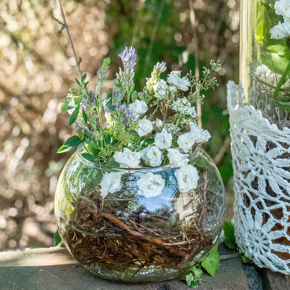 Aber auch die Kugelvase aus recyceltem Glas hat ihr ganz individuelles Flair. Kleine Schlieren, winzige Luftbläschen und Unregelmäßigkeiten in der Form machen jede Vase dieser Art zu einem Unikat.