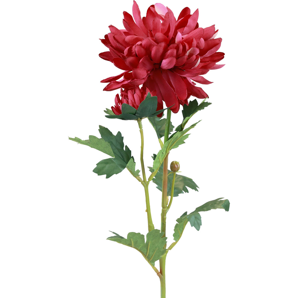 Le dahlia en tant que fleur décorative artificielle à Bordeaux a une longueur totale d'environ 61 centimètres. Les fleurs ont un diamètre d'environ 12 et 3,5 centimètres.