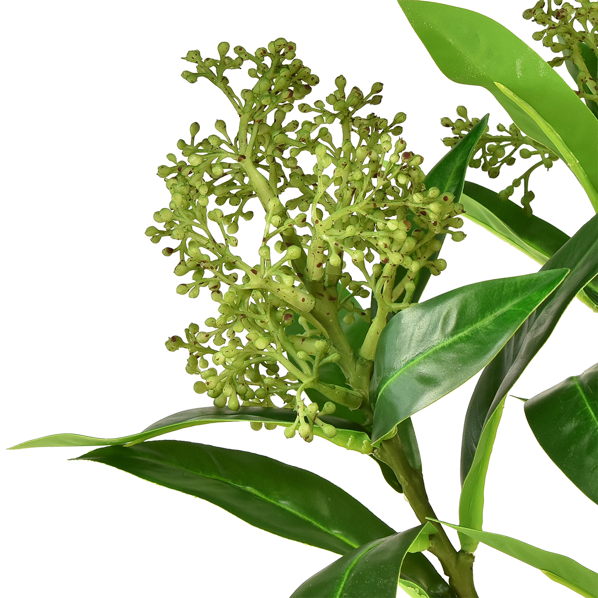 Entdecken Sie unsere Skimmia japonica als Kunstblumen – die perfekte grüne Deko für ein stimmungsvolles Zuhause. Mit sorgfältig gestalteten grünen Rispen und lebensechten Blättern zaubern diese realistischen Kunstpflanzen eine beruhigende Natürlichkeit in jeden Raum.