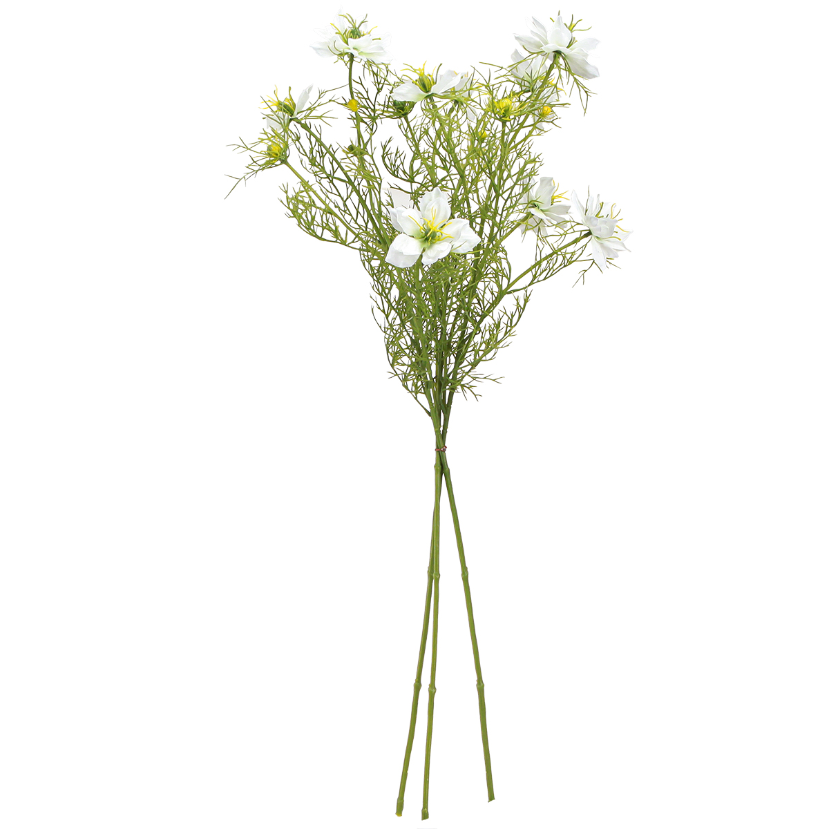 Fleurs Artificielles Nigelle Blanche Vierge en Vert 67cm 3 Pcs