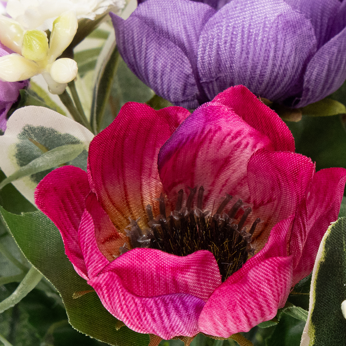 Le printemps est là ! Transformez votre intérieur en un havre de paix et donnez un nouveau souffle à votre décoration, sans le moindre entretien. Le bouquet d'anémones artificielles vous simplifie la vie. Cette composition colorée d'anémones, de marguerites et de touches de violet, d'un réalisme saisissant, apporte une note de nature à votre intérieur. L'alliance de couleurs vibrantes et de motifs floraux délicats s'harmonise parfaitement avec les intérieurs modernes et apporte une touche d'élégance à vos commodes, tables ou entrées. Utilisé comme centre de table chic dans votre salon ou comme élément décoratif accueillant sur votre bureau, ce bouquet compact (20 cm de large, 26 cm de haut) illuminera votre quotidien. Tenté(e) ? Poursuivez votre lecture pour en savoir plus sur cet accessoire polyvalent !