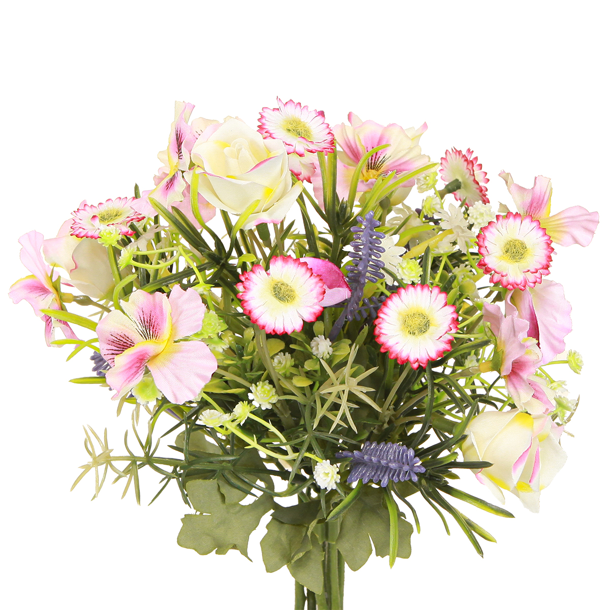 Bouquet di fiori artificiali in crema, rosa, viola e verde per la decorazione elegante del tuo soggiorno