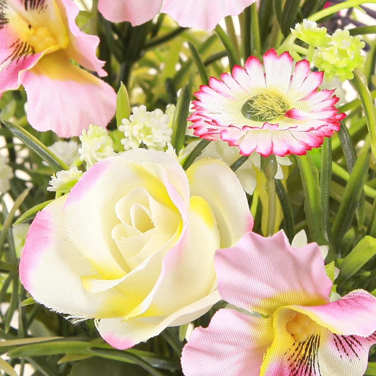 - Maintien sûr grâce au cadre avec 7 tiges de fleurs artificielles différentes