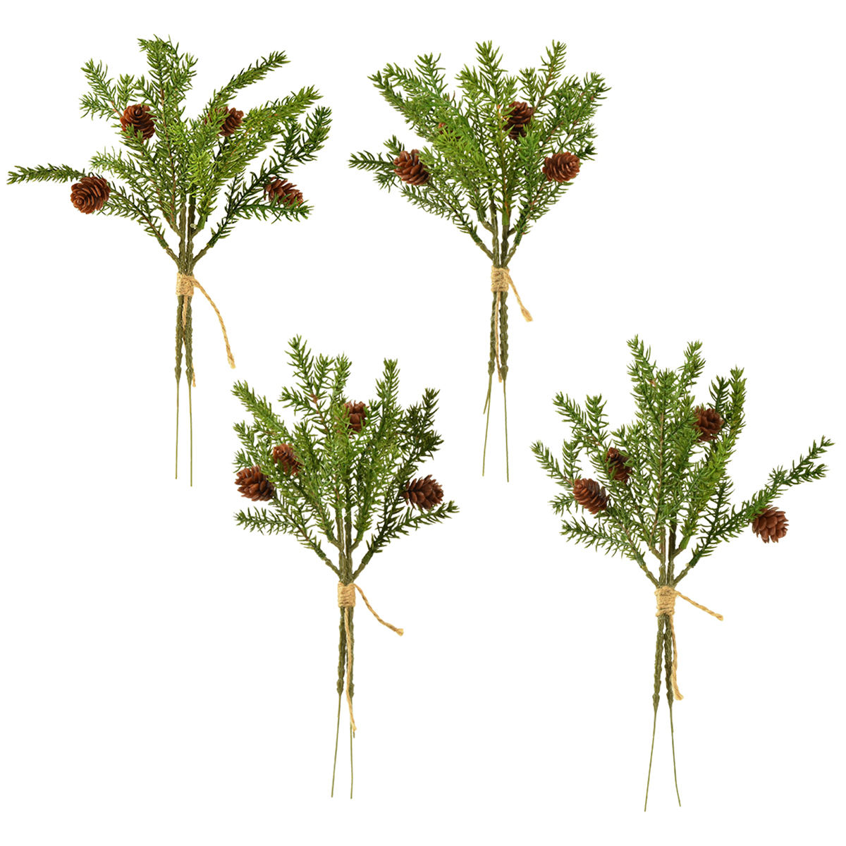 Branches de sapin artificielles avec pommes de pin naturelles, décoration de Noël en jute, 28 cm, lot de 4 pièces