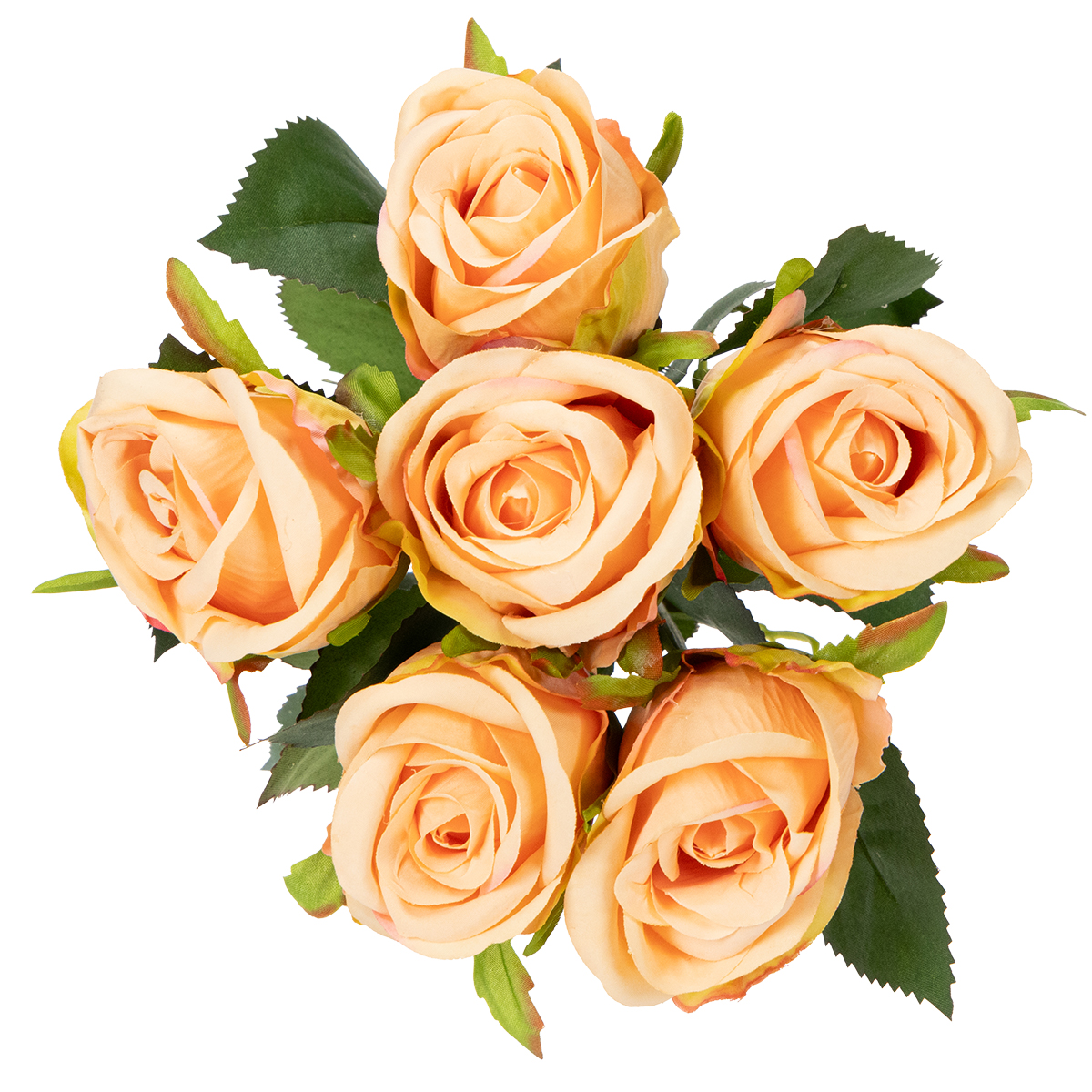 Mit einer Höhe von 44 cm und einem Durchmesser von 10 cm passt dieses Rosenbouquet ideal in mittlere bis größere Vasen oder kann in einem Blumenarrangement kreativ eingebunden werden. Die sechs kunstvoll gestalteten Rosen schaffen durch ihre zarten Rosatöne und die natürlichen grünen Blätter eine harmonische Komposition, die pure Eleganz ausstrahlt. Jedes Blatt und jede Blüte ist sorgfältig gearbeitet, um den natürlichen Charme echter Blumen einzufangen. Dieses aus Polyester und Kunststoff gefertigte Bouquet ist nicht nur optisch ansprechend, sondern auch extrem langlebig. Keine welkenden Blätter, kein Austrocknen und keine Allergien – ein klarer Vorteil gegenüber echten Blumen. Mit ein wenig Staubentfernung bleibt es über viele Jahre hinweg wunderschön, perfekt geeignet für alle, die Wert auf eine nachhaltige Dekoration legen. Kombinieren Sie das Bouquet mit anderen Kunstblumen aus unserem Sortiment oder setzen Sie es als Hingucker in Szene – die Möglichkeiten sind nahezu grenzenlos!