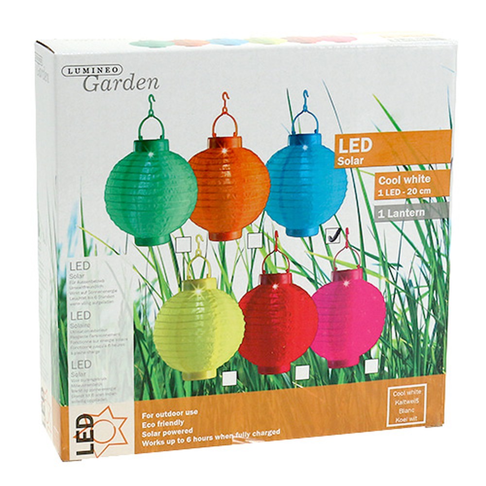 La lanterna a LED blu con modulo solare ha il gancio di circa 30 centimetri di diametro e ha un diametro di circa 20 centimetri. Ha anche questo quando è piegato a circa 6 centimetri. Quindi puoi decorare la tua terrazza o il tuo balcone con lo champagne da giardinaggio e poi rilassarti su un lettino in una mite notte d'estate.