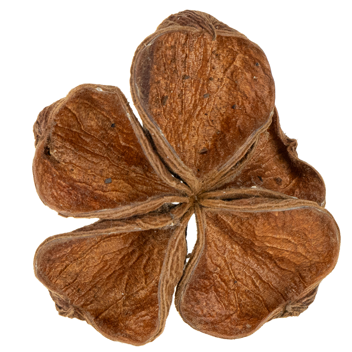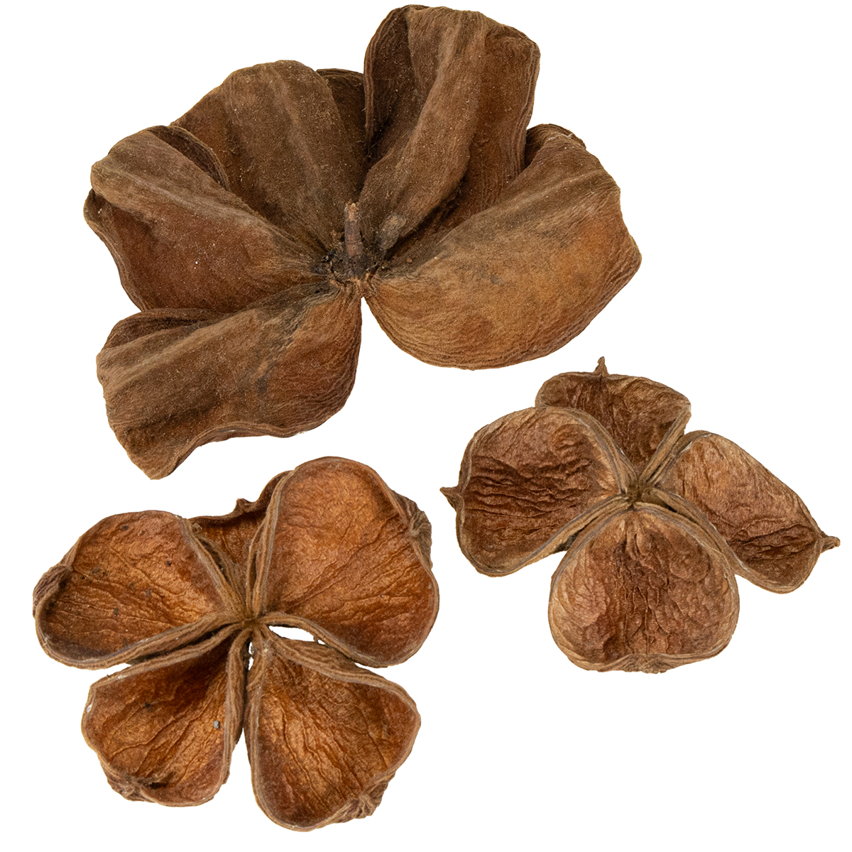 Voilà un article très apprécié pour les compositions de fleurs séchées ! Ces fruits séchés en forme d’étoile sont issus du sterculier, appelé aussi Sterculia en botanique mais aussi arbre caca pour ne citer que l’une des variantes de son nom que l’on doit au fait qu’il produit des fleurs malodorantes. Mais ne vous inquiétez pas, les fruits que nous vous proposons ici ne sentent pas mauvais ! Une fois ouvertes, les gousses ressemblent un peu à des fleurs de lotus.Ces fruits secs sont souvent utilisés dans le domaine de l’art floral funéraire pour orner un bouquet du souvenir, un devant de tombe, un arrangement ou une couronne de deuil. Pour réaliser les décorations funéraires que vous proposerez à vos clients, vous pourrez utiliser soit le fruit en entier soit uniquement quelques capsules. Il vous sera facile de les séparer de leur base pour les mettre à profit dans votre travail.