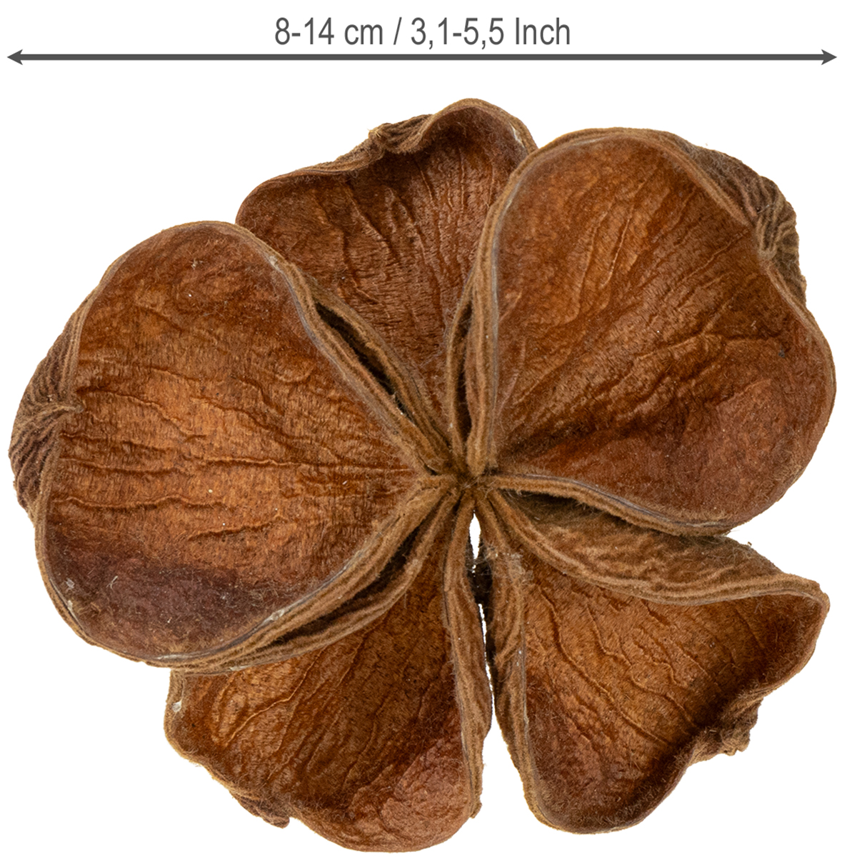 Un popolare prodotto naturale dalla floristica secca! Il Landlotus essiccato, botanicamente chiamato anche Sterculia, è il gruppo di frutta a forma di stella dell'albero tropicale con il nome senza gloria Stinkbaum. Ma non preoccuparti, questi frutti offerti non hanno odore! Poiché le capsule di frutta aperte sembrano un fiore di loto, sono popolarmente chiamate Landlotus.I frutti secchi sono spesso usati nella floristica commemorativa per decorare un bouquet funebre, una lapide, un memoriale o una corona funebre. Se tu stesso offri ai tuoi clienti una decorazione a lutto e vuoi decorare con il loto, allora hai l'opportunità di utilizzare l'intero banco di frutta o di utilizzare singole capsule. Questi possono essere facilmente suddivisi e quindi installati.