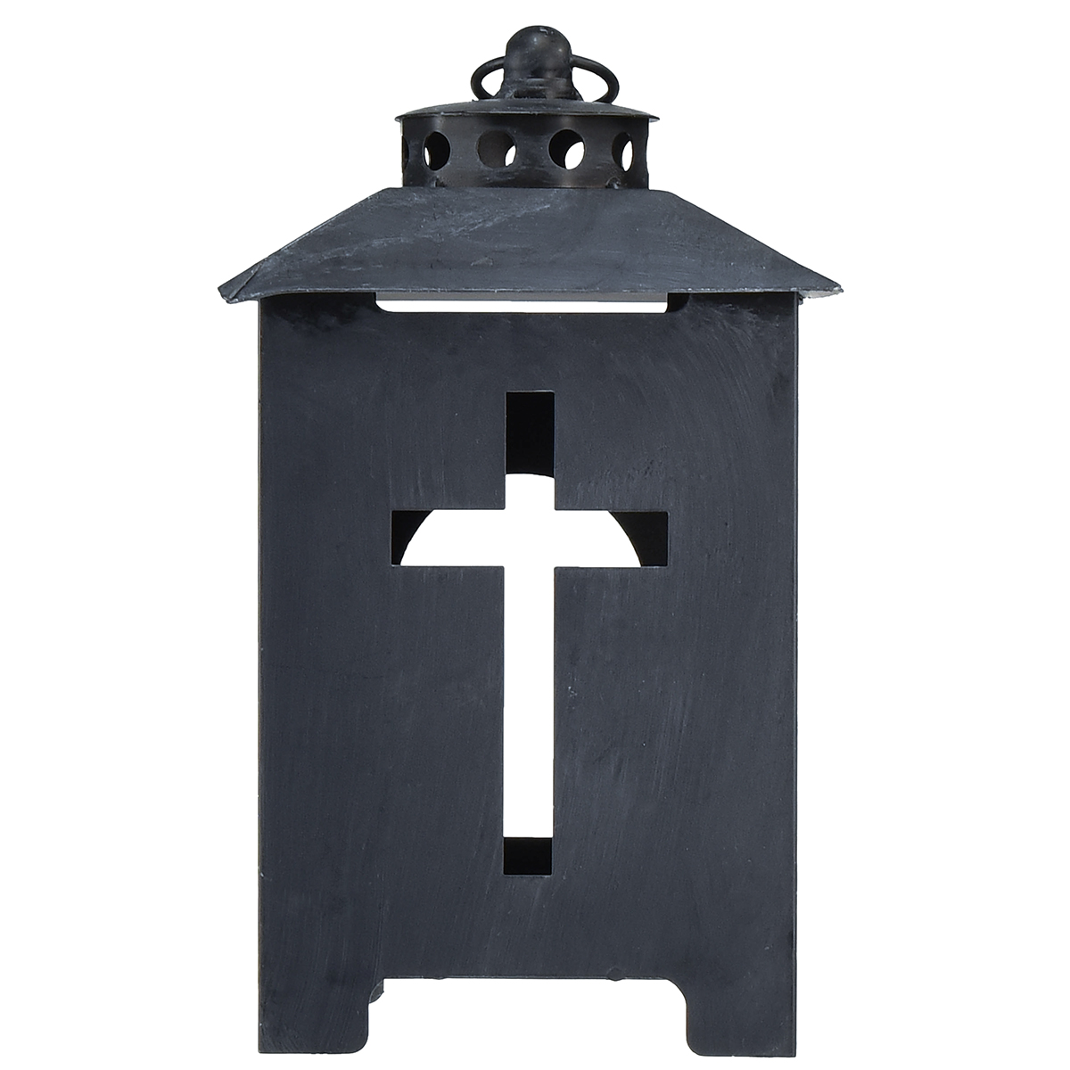 Lanterne funéraire croix fenêtre métal gris antique 13 x 27 cm