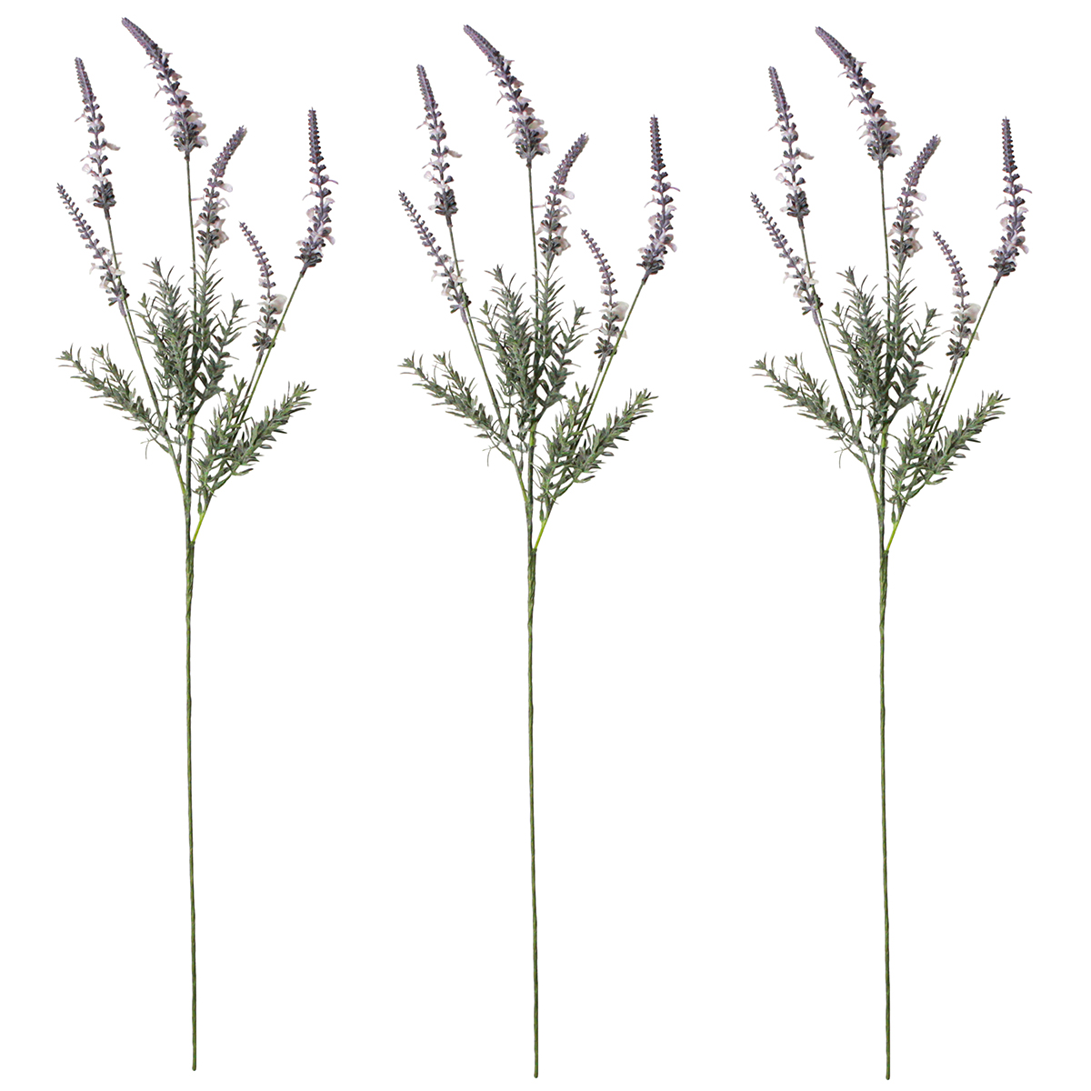 - Drei Lavendel-Kunstblumen, langstielig, 82 cm hoch