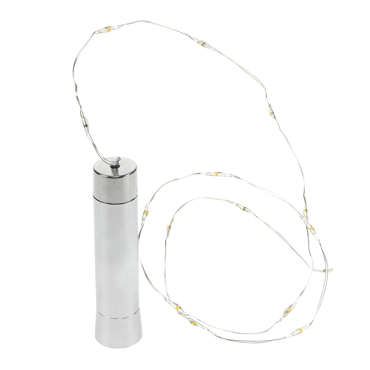 Das LED-Flaschenlicht in Warmweiß hat mit dem Verschluss eine Gesamtlänge von ungefähr 82 Zentimetern. Auf der etwa 73 Zentimeter langen Lichterkette sitzen insgesamt 15 kleine LED. Der silberne Verschluss weist oben einen Durchmesser von circa 2 Zentimetern auf und verjüngt sich nach unten etwas, so dass er zum Beispiel in den Hals einer Weinflasche passt. Für die Bottlelights benötigen Sie zusätzlich eine AA-Batterie.
