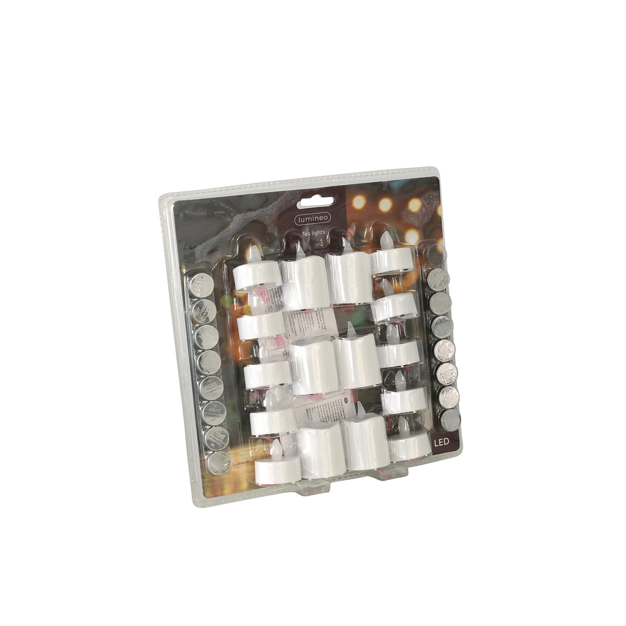 Candele LED tea light effetto fiamma bianco caldo set di 16 batterie assortite 32