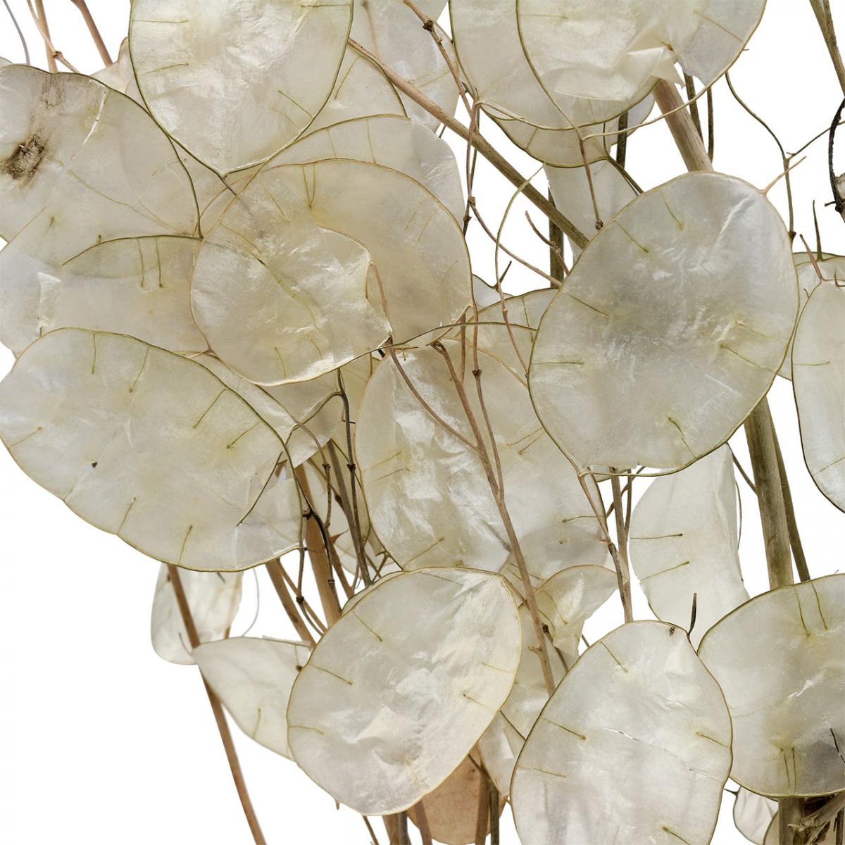 Lunaria als Trockenblumen sind eine langlebige Art, die schöne Mondviole in Sträuße oder Werkstücke einzubinden.Das Silberblatt in getrockneter Form bezaubert durch seine zahlreichen Samenkapseln, die zauberhaft irisierend schimmern. Die blattartigen Kapseln der Lunaria annua, auch unter dem Namen Judaspfennig oder ausdauerndes Silberblatt bekannt, verbleiben im Winter am Zweig. Deshalb passt die schöne Silberblatt-Deko besonders gut in Trockenfloristik für den Herbst oder als winterliche Adventsdeko.
