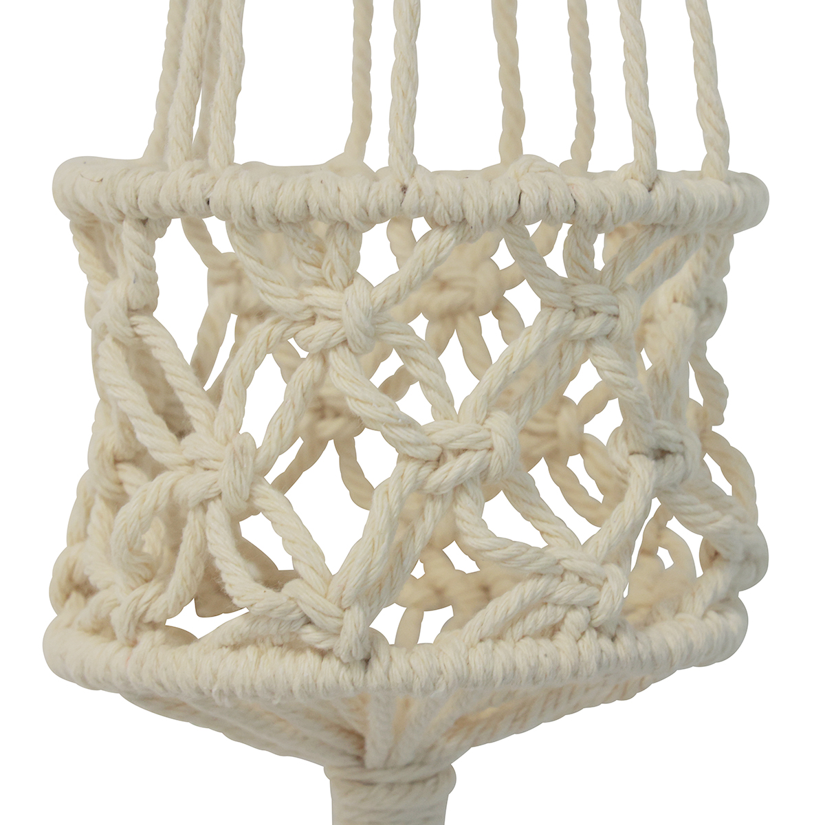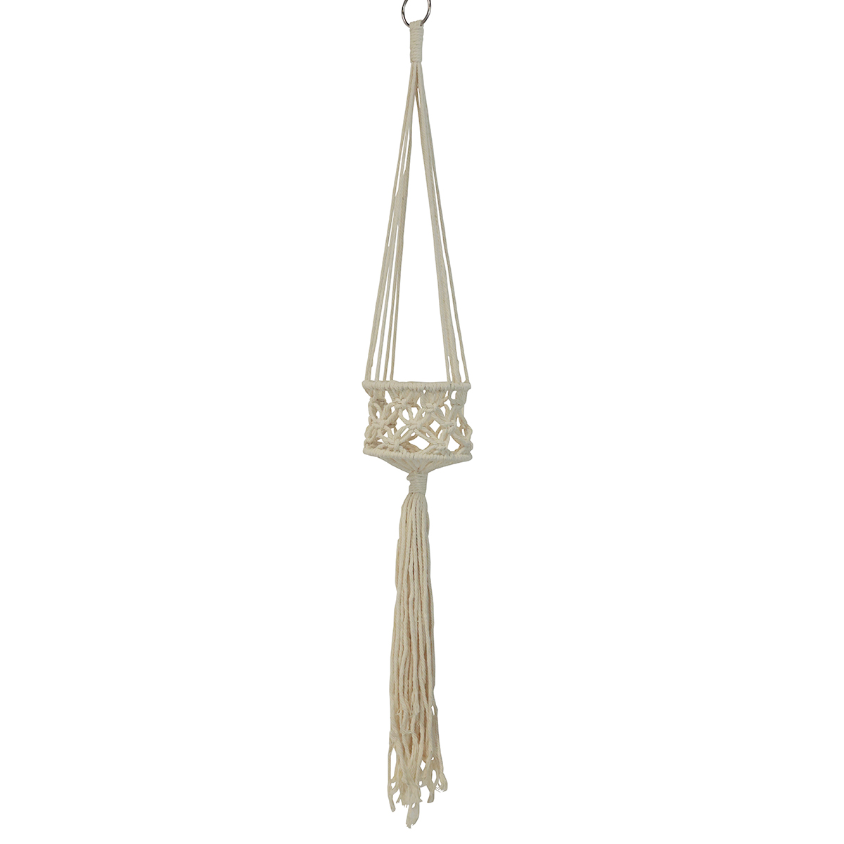 Décoration murale suspendue en macramé style bohème Ø12cm H79cm Crème - Pot de fleurs suspendu