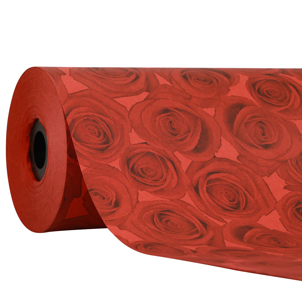 Coupez le papier de soie du rouleau à la longueur souhaitée et utilisez-le pour emballer des livres, des boîtes de chocolats et des bouteilles de vin, ou placez le papier décoratif imprimé avec des roses sur une table romantique comme chemin de table.