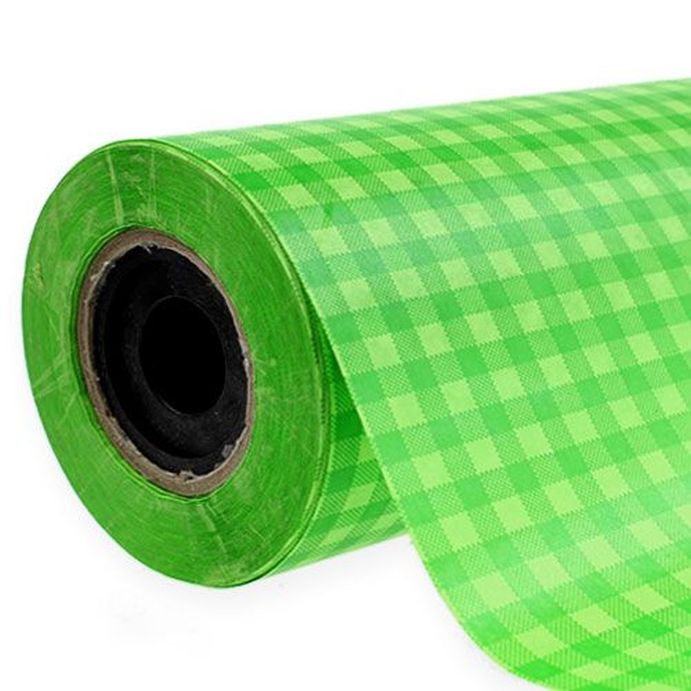 Ce papier très solide teinté d’un beau vert printanier est un accessoire à la fois d’emballage et de décoration. Il affiche une largeur d’environ 25 cm et est livré en rouleau de 100 mètres. Servez-vous de ce papier d’emballage à carreaux pour former de ravissantes manchettes à bouquets et pour emballer avec élégance vos plantes en pot mais aussi toutes sortes d’objets à offrir. Article indispensable à tout bon fleuriste, c’est là un véritable incontournable de l’art floral.Largeur : 25 cm
