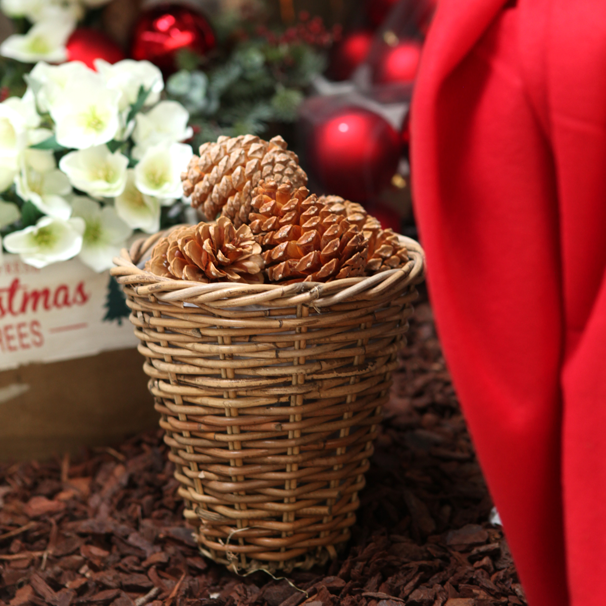 Ces cônes de pin maritime couleur crème et vanille sont de magnifiques produits naturels qui se prêtent au bricolage de Noël et feront des merveilles dans les plus beaux arrangements funéraires. Ces grandes pommes de pin lignifiées du Pinus Maritima, appelé aussi pin des Landes ou pin de Corte, vous séduiront de par leur esthétique et leur robustesse et conviennent donc particulièrement bien aux compositions de deuil déposées au cimetière en hiver. Vous pourrez par exemple en placer un exemplaire au milieu d’une base faite de branches de sapin puis disposer autour des plantes exotiques comme des feuilles de palmier et de coco ainsi que des fleurs séchées.Grâce à leur taille généreuse, les cônes du pin maritime pourront se transformer en mini sapins de Noël qui vous ferez trôner sur la table de fête ou le rebord d’une fenêtre. Vous pourrez à cet effet les poser dans des pots en terre cuite ou des soucoupes pour ensuite les garnir comme bon vous semble, par exemple avec des perles, des étoiles ou des aiguilles de pin. Autre idée originale : garnir le bas d’un cône avec une jolie cordelette sur laquelle vous attacherez également des articles de décoration comme des bâtons de cannelle, des boules de Noël, des étoiles en feutrine et des branches de sapin - de quoi réaliser une somptueuse décoration de fenêtre qui fera assurément des envieux !